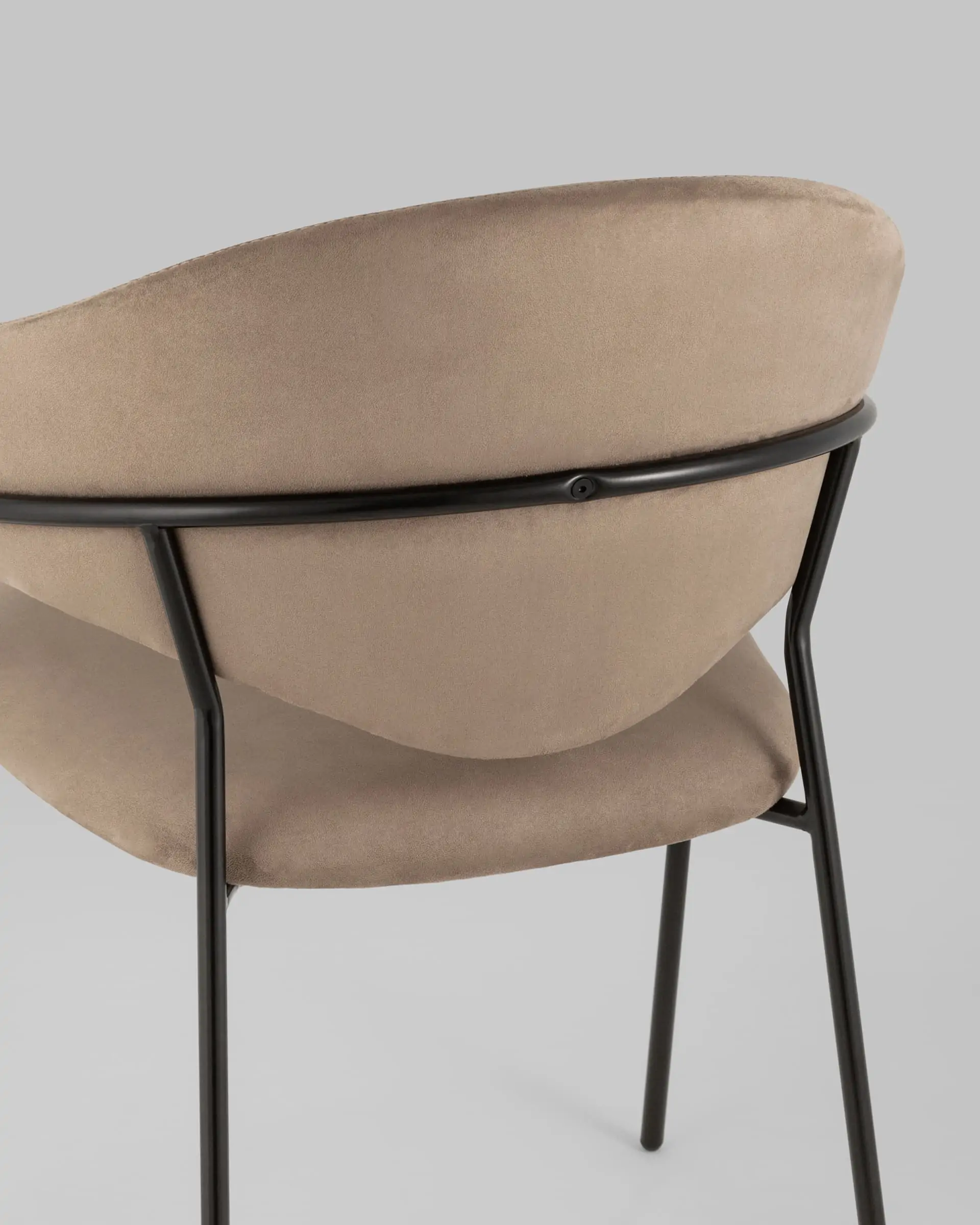 Запросить индивидуальное предложениеСтильный кухонный стул с оригинальной формой спинки, высокой поддержкой и подлокотниками. В качестве обивки используется искусственная замша – приятный на ощупь износостойкий, долговечный материал, обладает эффектом "антикоготь". Металлический каркас в черном цвете огибает спинку и выступает аккуратным акцентом модели. Широкое сиденье обеспечивает удобную посадку и уют.