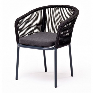 "Марсель" стул плетеный из роупа, каркас алюминий темно-серый (RAL7024) муар, роуп темно-серый круглый, ткань темно-серая 027