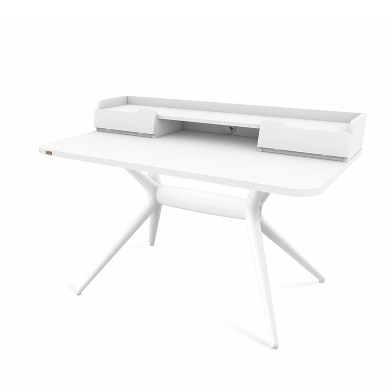 Сдержанный стиль столешницы идеально сочетается с мебелью в современном стиле. На рабочей поверхности расположены два вместительных выдвижных ящика высотой 165 мм и шириной 318 мм для хранения разных вещей. Удобная ниша между ящиками на столешнице подходит для ноутбука. Столешница оборудована системой кабель-менеджмента. В заднем бортике имеется отверстие для проводов, что позволяет удобно расположить зарядку для ноутбука или технические кабели компьютера.