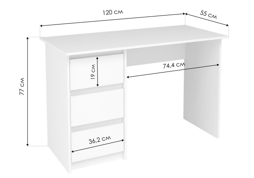 Письменный стол Идена СТП06-1200 120х55х77 ЛДСП белое / ЛДСП белое