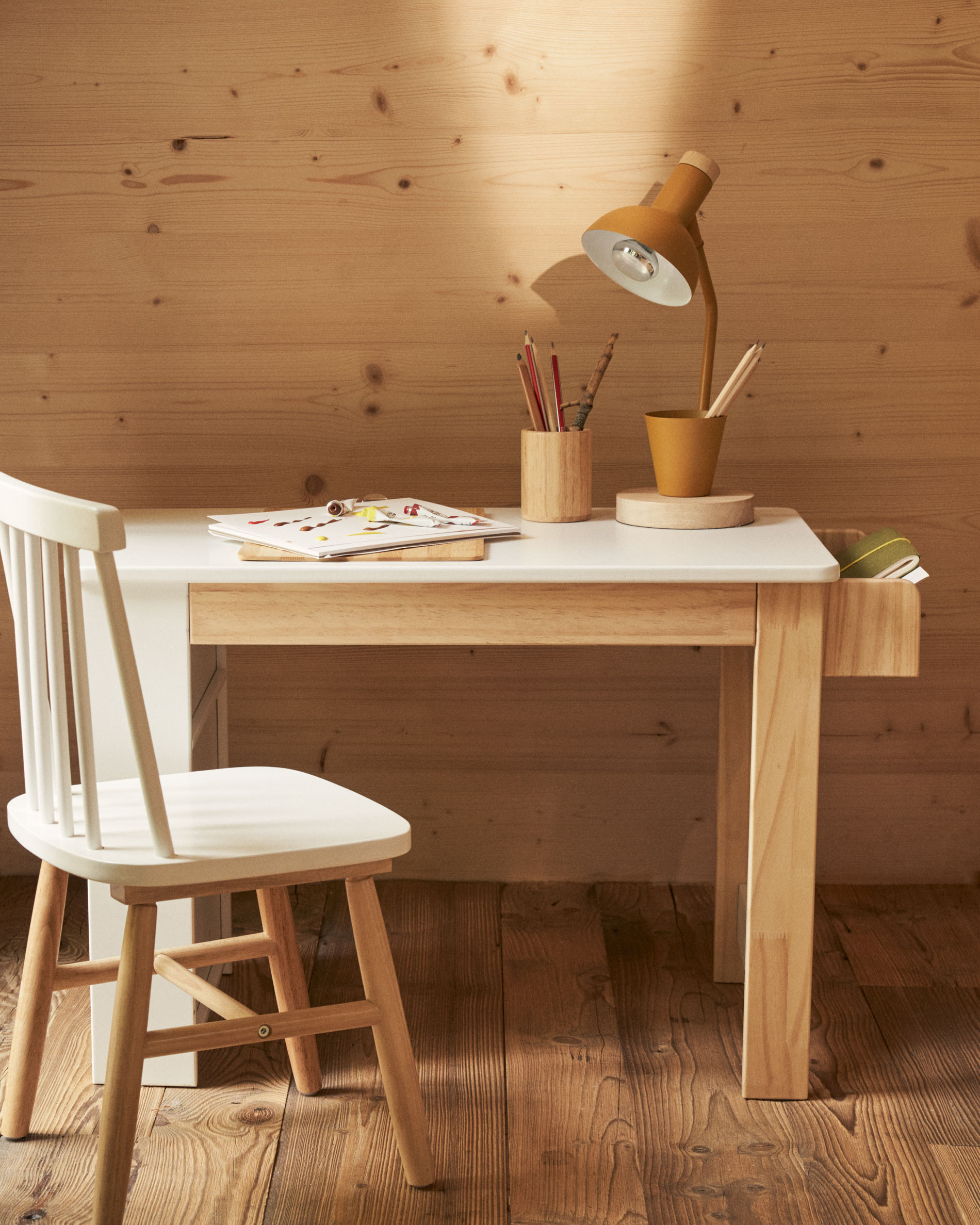 Serwa Письменный стол из белого МДФ с ножками из массива сосны
