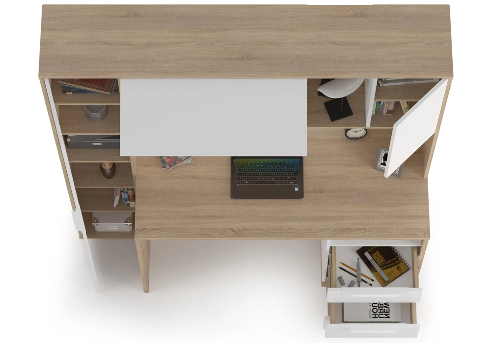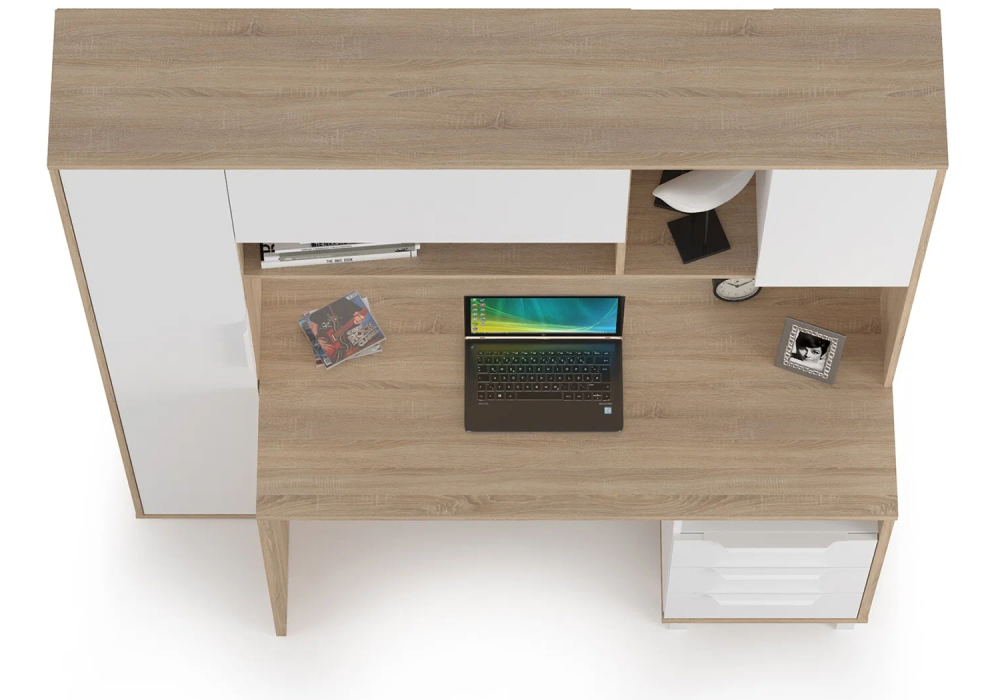 Письменный стол Комфорт 12.95 162х60,3х180 дуб сонома / белый PE шагрень