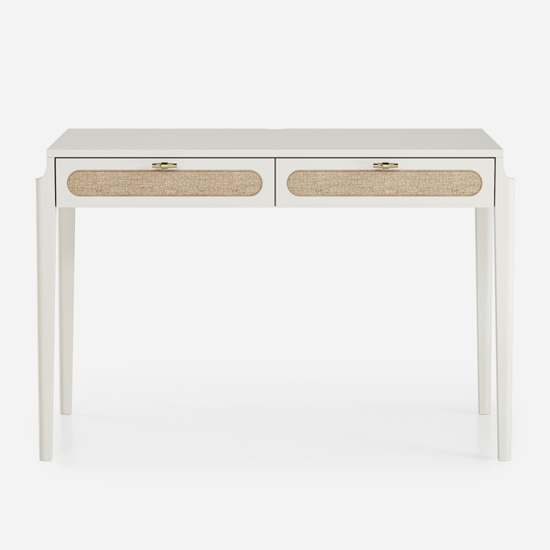 Запросить индивидуальное предложениеВ основе дизайна коллекции Vishera – оригинальный фасадный декор, выполненный из натурального ротангового полотна. Естественная плетеная фактура ротанга придает мебели легкое очарование, свойственное традиционным ремесленным техникам, а природные текстуры и натуральные оттенки отделки создают неповторимую гармонию, теплоту и уют. Коллекция Vishera - это гармония натуральных текстур, легкости и мягкого минимализма. Мебель из коллекции органично дополнит ваш интерьер, будь то скандинавский стиль, soft-minimal, japandi или даже бохо. Эргономика стола разработана таким образом, чтобы работать за ним было максимально комфортно. Пространство для ног позволяет комфортно сидеть даже человеку с ростом до 195см.Два неглубоких, но вместительных ящика позволят разместить в них книги, ноутбук, планшет, альбом для рисования, канцелярские принадлежности, оставив таким образом рабочую поверхность стола свободной и удобной для работы.