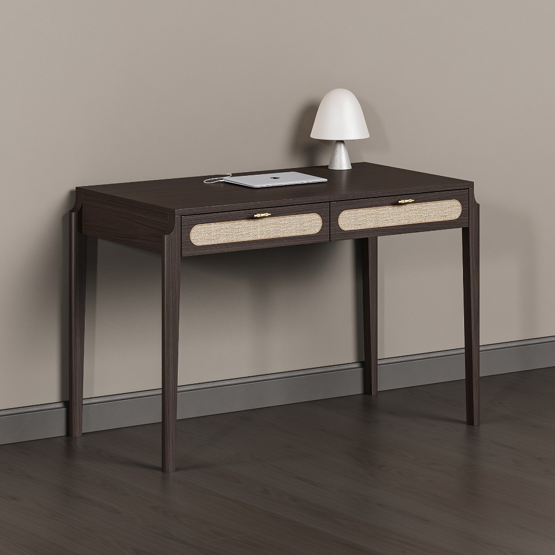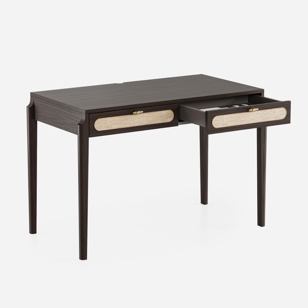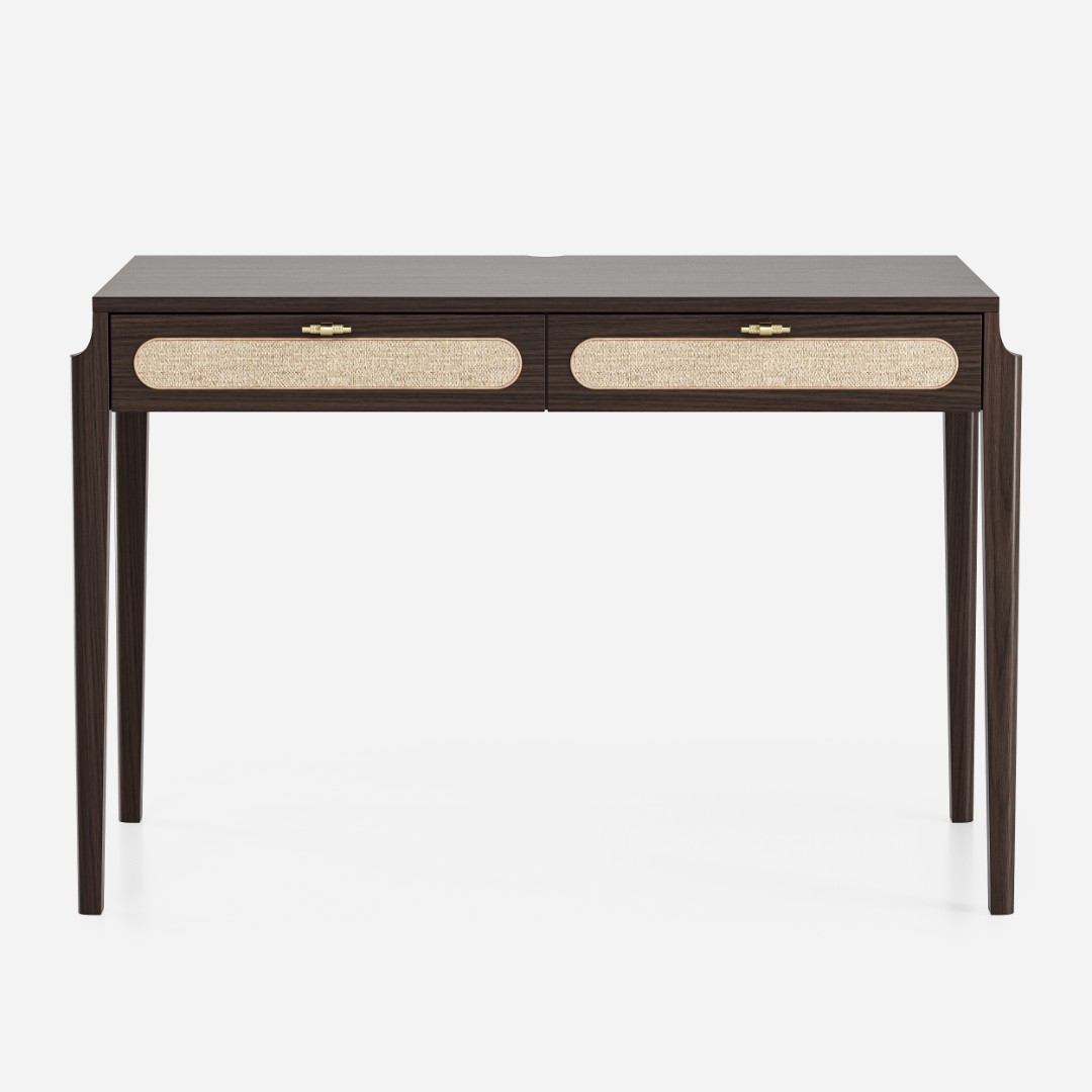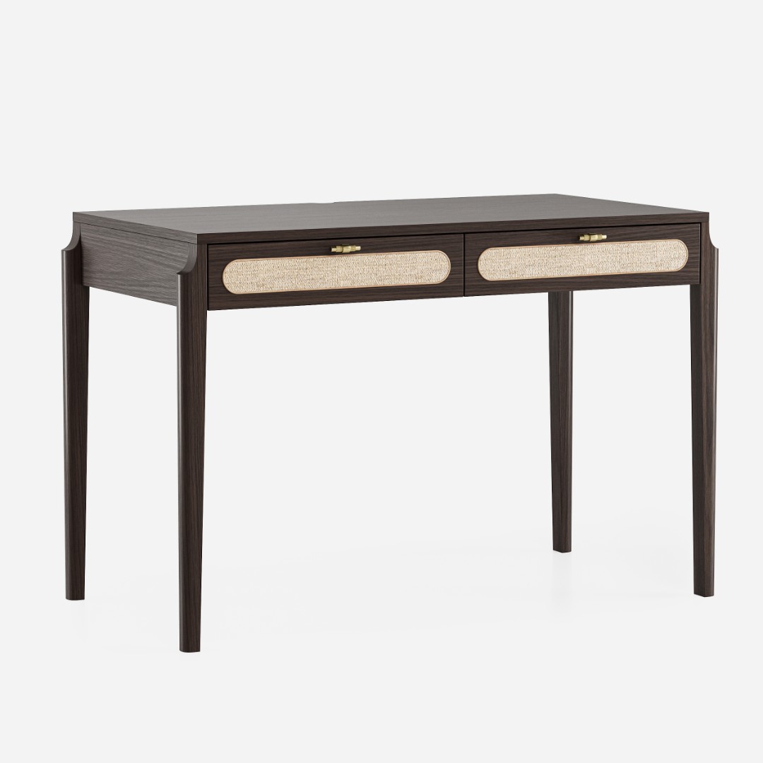 Запросить индивидуальное предложениеВ основе дизайна коллекции Vishera – оригинальный фасадный декор, выполненный из натурального ротангового полотна. Естественная плетеная фактура ротанга придает мебели легкое очарование, свойственное традиционным ремесленным техникам, а природные текстуры и натуральные оттенки отделки создают неповторимую гармонию, теплоту и уют. Коллекция Vishera - это гармония натуральных текстур, легкости и мягкого минимализма. Мебель из коллекции органично дополнит ваш интерьер, будь то скандинавский стиль, soft-minimal, japandi или даже бохо. Эргономика стола разработана таким образом, чтобы работать за ним было максимально комфортно. Пространство для ног позволяет комфортно сидеть даже человеку с ростом до 195см.Два неглубоких, но вместительных ящика позволят разместить в них книги, ноутбук, планшет, альбом для рисования, канцелярские принадлежности, оставив таким образом рабочую поверхность стола свободной и удобной для работы.
