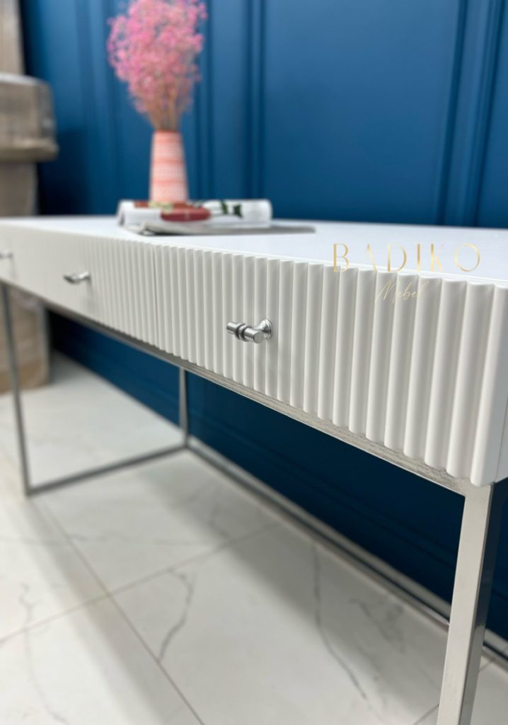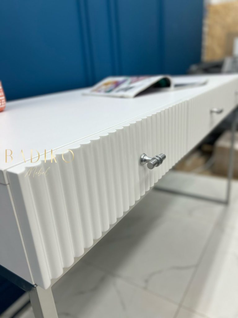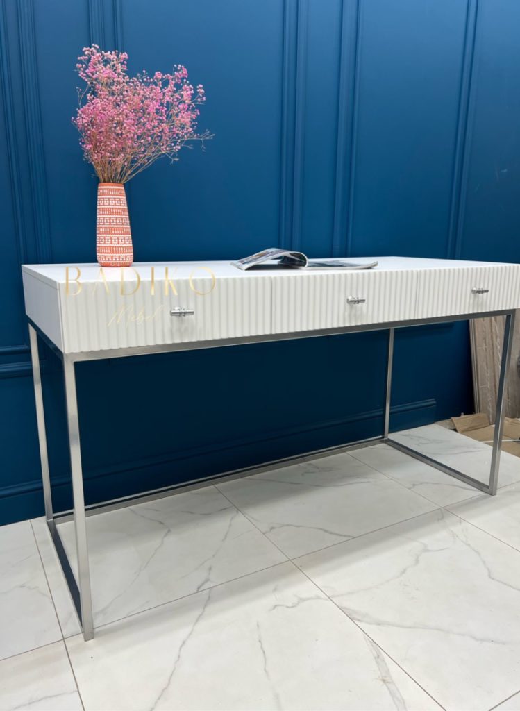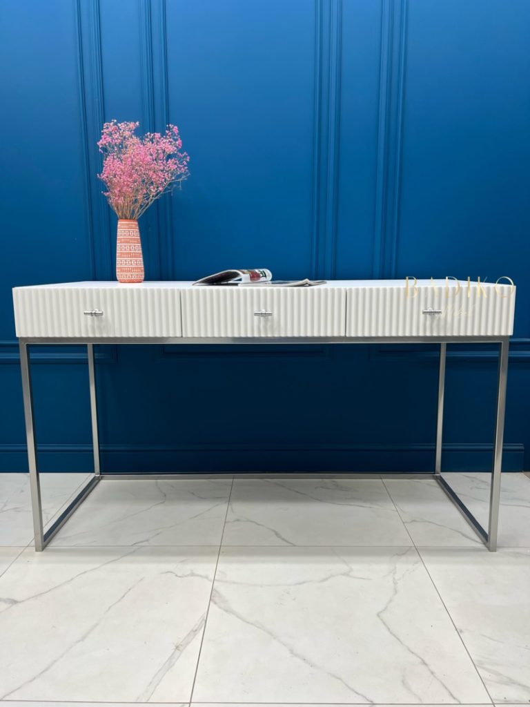 Запросить индивидуальное предложение- Утонченный письменный стол Versal — вместительный с тремя выдвижными ящиками, который можно использовать одновременно и как туалетный стол и письменным, в нём найдется место под всё.