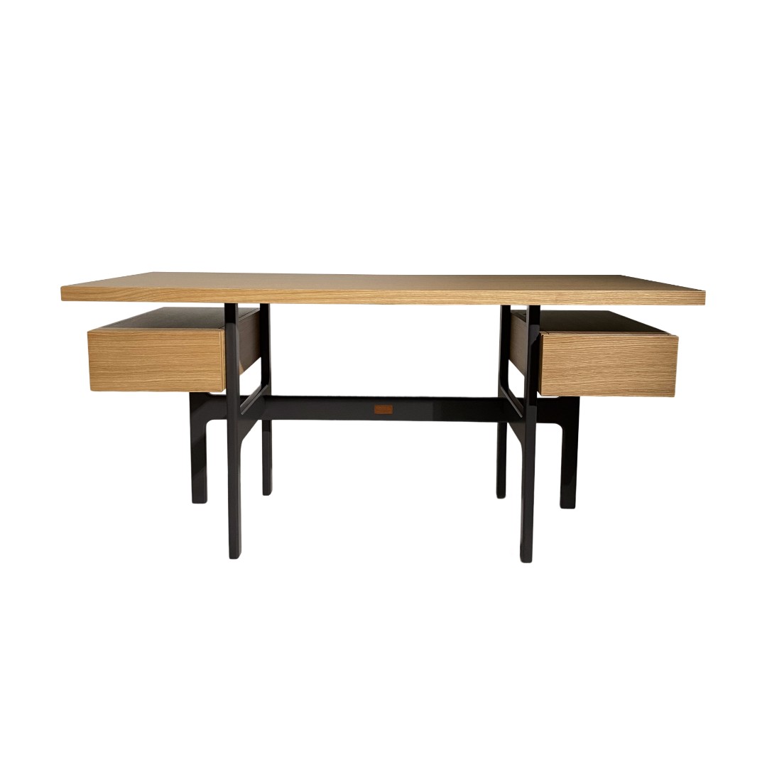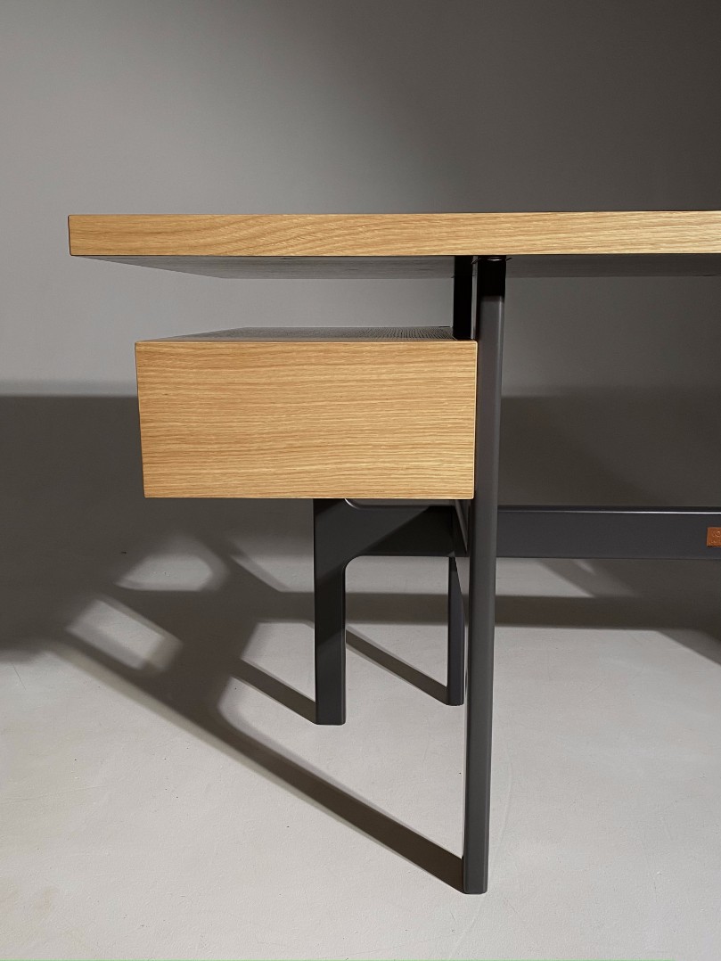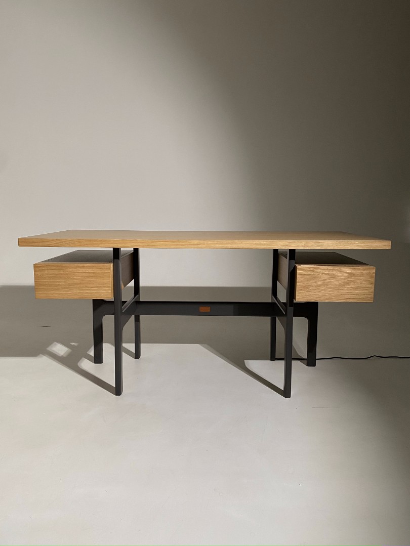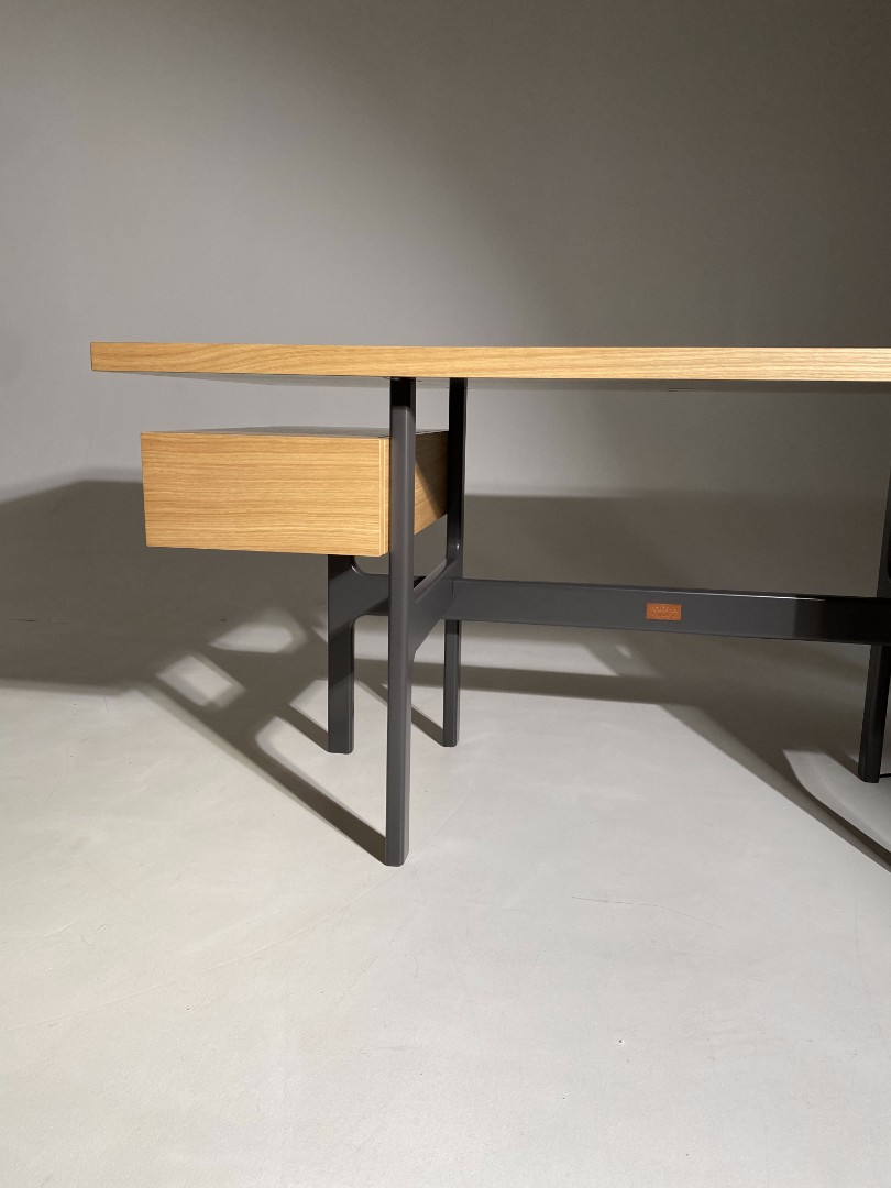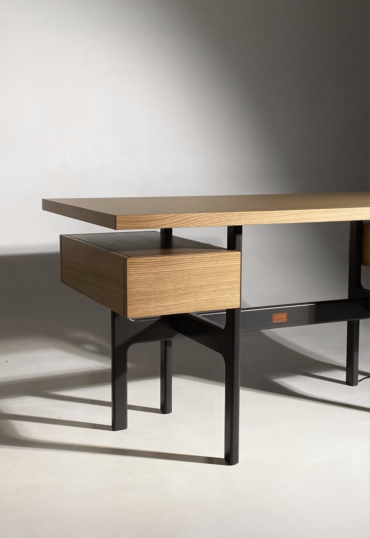 Запросить индивидуальное предложениеBridge Desk — рабочий стол с выразительной архитектурной формой. Его дизайн вдохновлен мостами: строгие линии, прочные опоры и легкость в деталях. Подвесные ящики создают ощущение парящей конструкции, обеспечивая удобное хранение. Bridge Desk — это сочетание функциональности и характерного дизайна. Подвесные ящики не утяжеляют общий облик, а создают ощущение парящей формы, оставляя подстольное пространство свободным. Может быть изготовлен со скрытым встроенным блоком розеток, чтобы удобно подключать технику Чистые геометрические формы и внимание к деталям делают его универсальным решением как для домашнего кабинета, так и для офисного пространства.