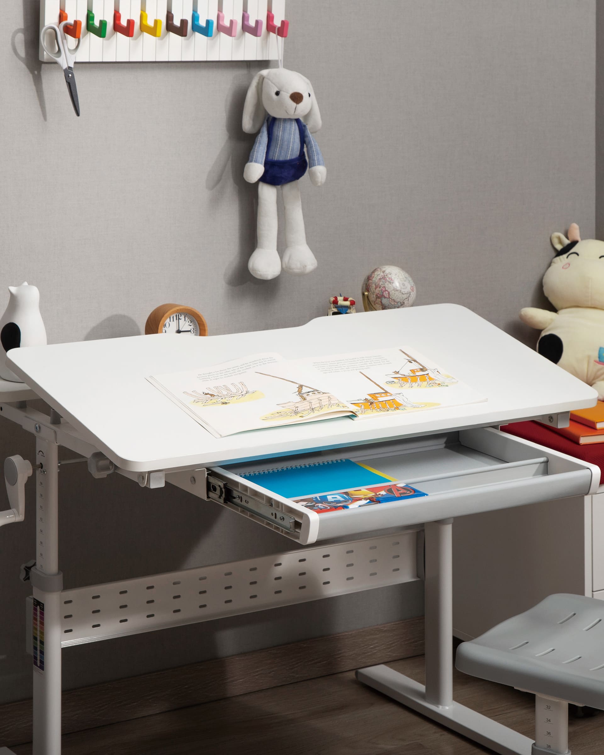 Также предусмотрен крючок для портфеля, чтобы все необходимое было всегда под рукой.
