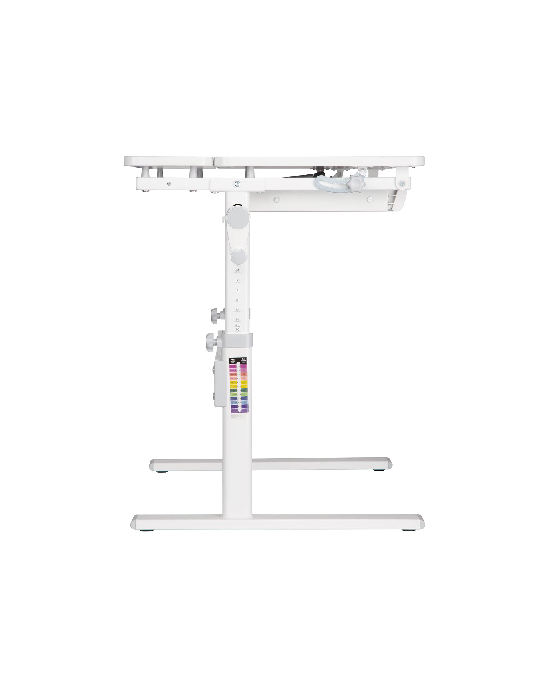 Для удобства на ножке парты предусмотрена ростовая шкала, по которой можно определить правильную высоту столешницы для ребенка. Высоту столешницы можно легко подстроить под рост ребенка – достаточно плавно поднять парту до щелчка. Это позволит обеспечить анатомически правильную посадку ребенка в дошкольном и школьном возрасте.