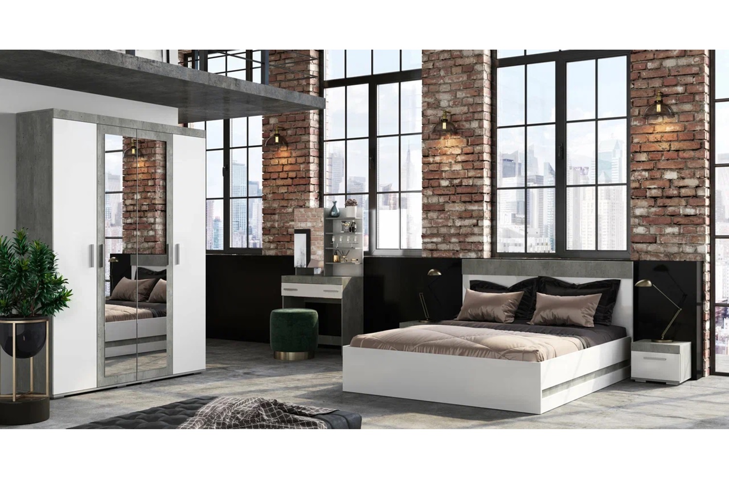 Столик туалетный Инстайл СТ-01, бетон/белый