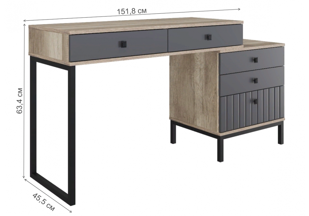 Туалетный столик Пласидо дуб каньон монумент / софт серый дым