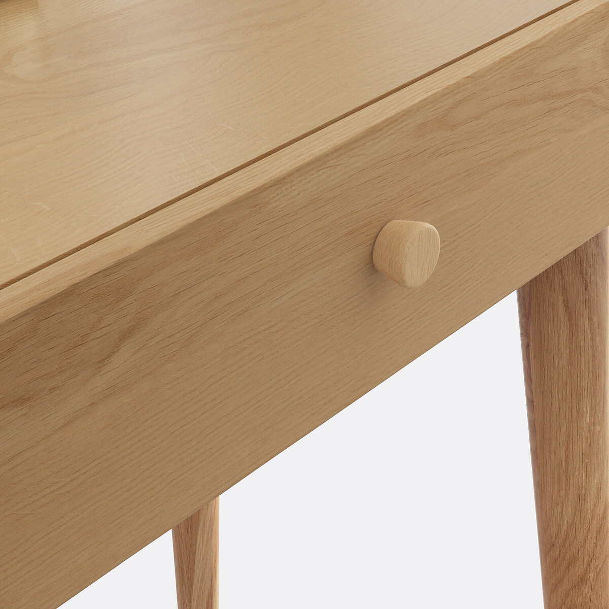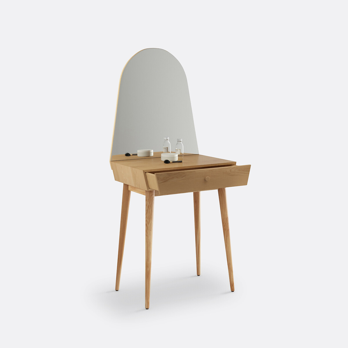 Компактный туалетный столик с зеркалом в скандинавском стиле – роскошь, которую можно позволить себе даже в небольшой квартире! Стильный дизайн, лаконичный силуэт и приятные древесные оттенки превращают этот туалетный столик в эффектное украшение вашего интерьера. Мебель гармонично дополняет обстановку комнаты, не занимая много места и визуально расширяя пространство. Соберите все косметические принадлежности, парфюмерию и средства для макияжа, чтобы тратить меньше времени на ежедневный уход и подарить себе радость от приятных процедур!