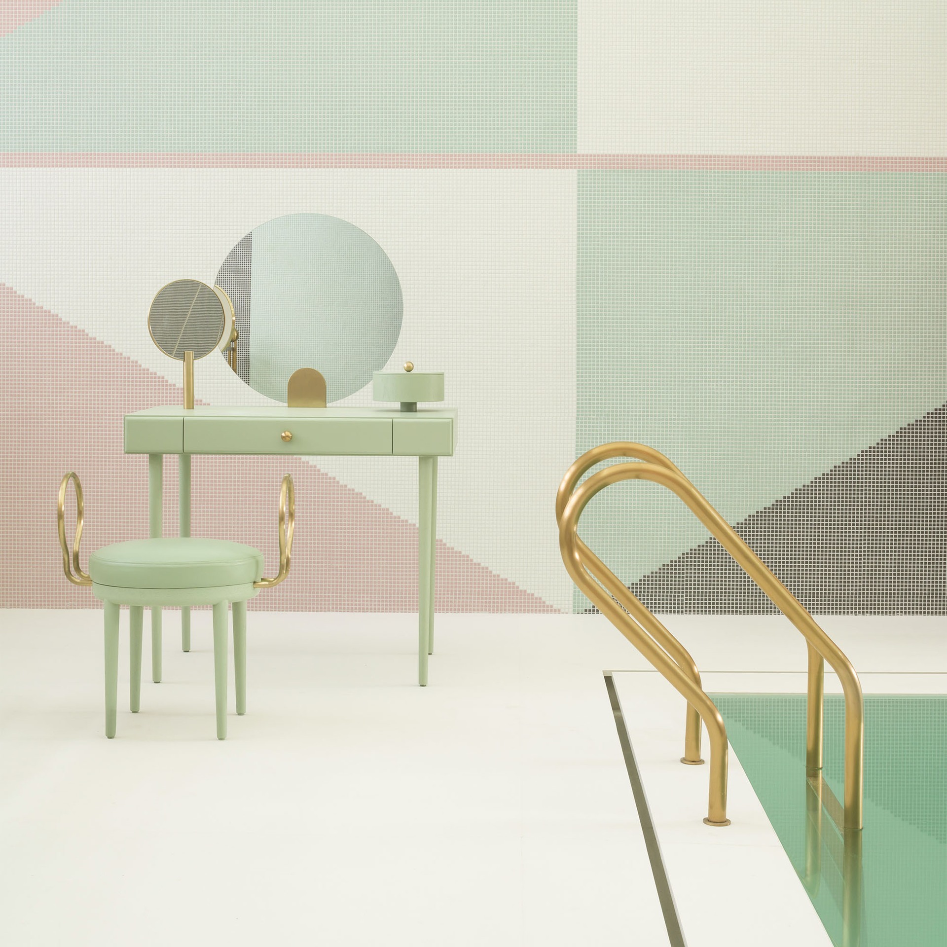 Обвязка зеркал, ручек и подлокотников табурета латунная, цвета шампанского.