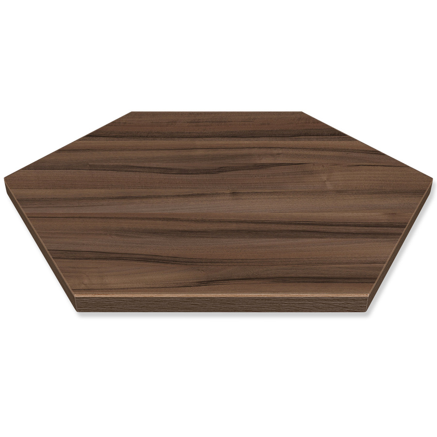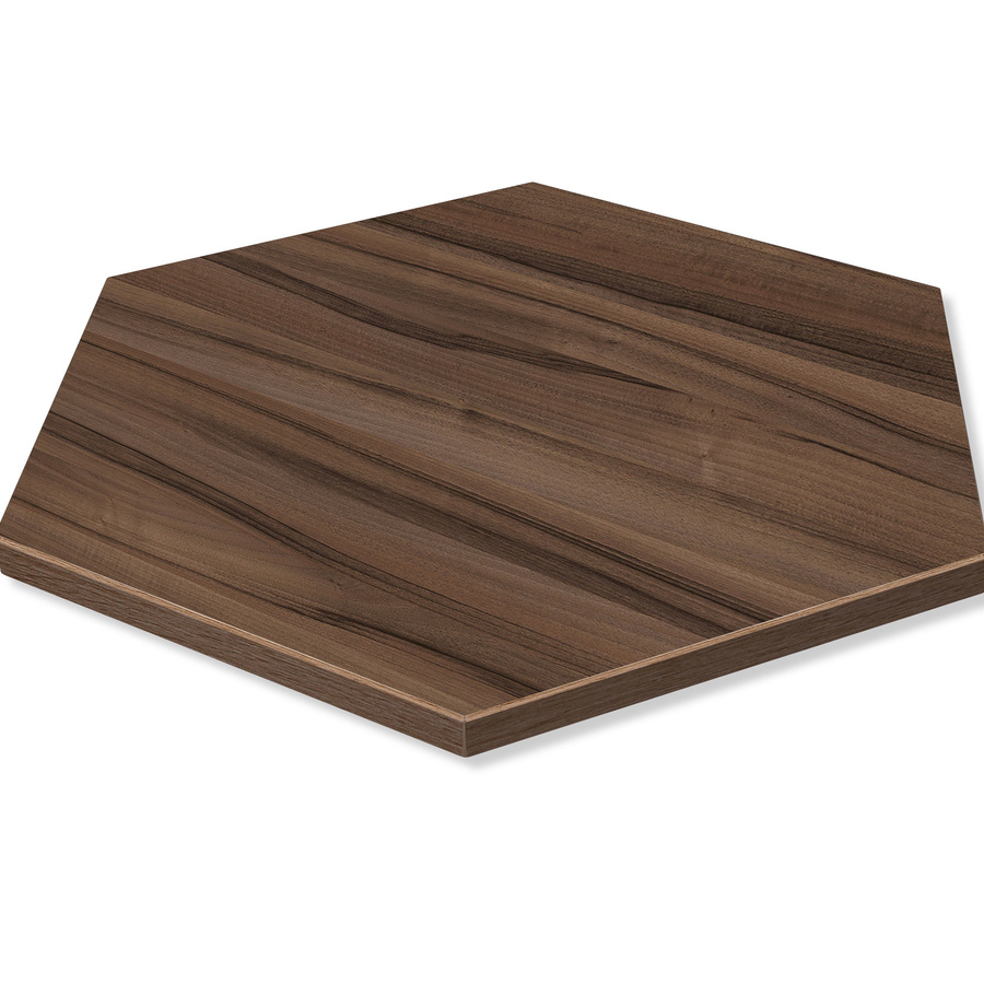 Столешница шестигранник - необычное дизайнерское решение для интерьера! Столешница выполнена из ЛДСП и покрыта специальной пленкой, которая формирует защитный слой от внешнего воздействия. Цвет каждой столешницы имитирует текстуру ценного сорта древесины. Закругленные края добавят дополнительную прочность и долговечность.