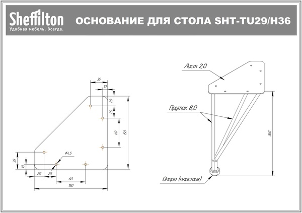 Предусмотрен подпятник с резиновой проставкой. Он эффективно защищает половое покрытие от царапин.
