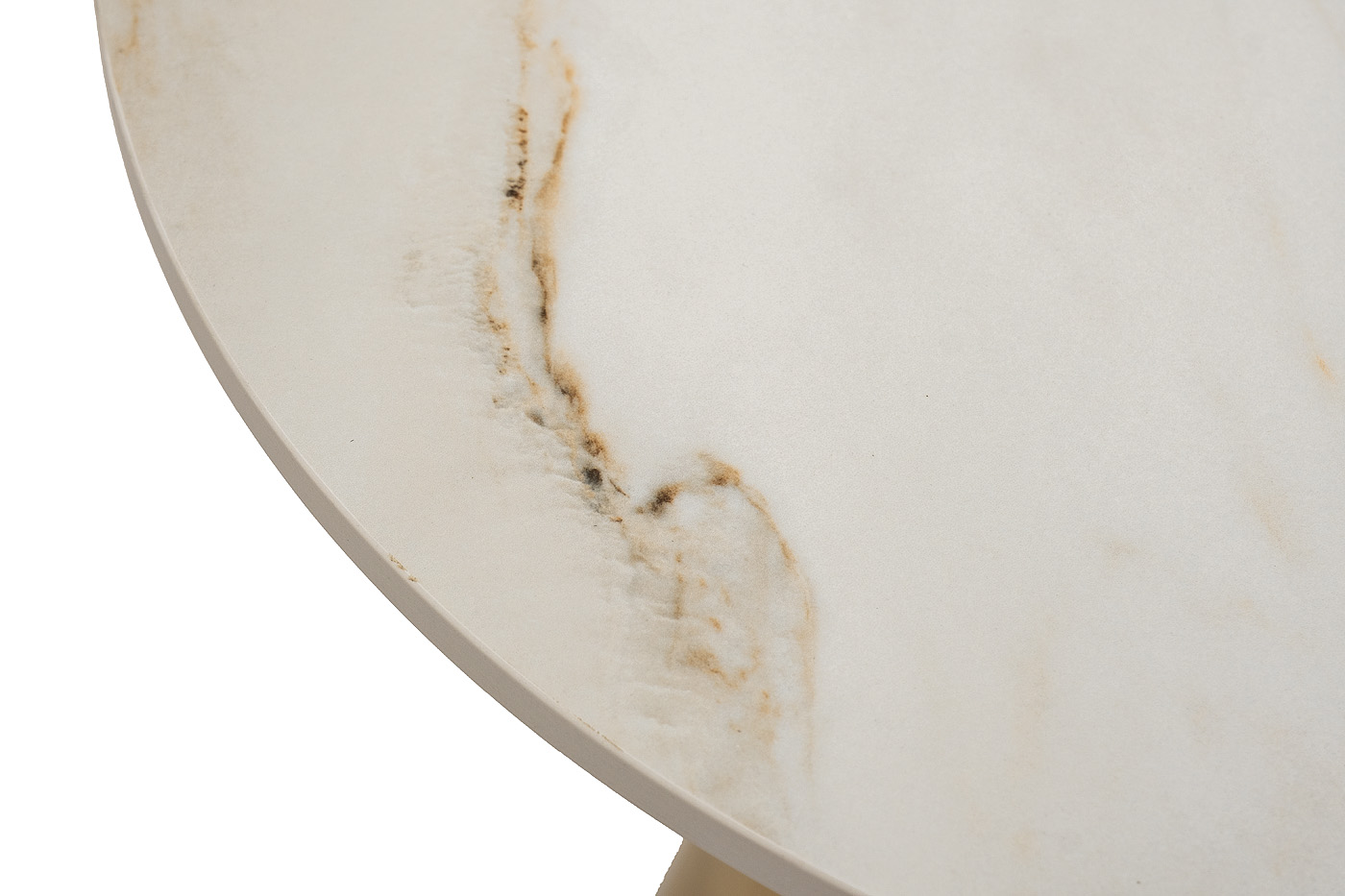 Запросить индивидуальное предложениеКруглый журнальный стол – стильная и лаконичная мебель, которая будет особенно гармонично смотреться в классическом интерьере или стиле арт-деко. Белый журнальный стол сделает ваше домашнее пространство ещё более стильным и элегантным. Модель привлекает внимание своим современным дизайнерским решением. Журнальный стол, выполненный в изысканных белых тонах, заслуживает внимания и обязательно станет любимым элементом в вашем интерьере. Он может использоваться в качестве самостоятельного изделия, а также в тандеме с другим журнальным из этой коллекции. Столешница изготовлена из прессованного при высокой температуре керамогранита, что обеспечивает высокую степень надежности и износостойкости. Толщина столешницы - 12мм. Сочетается со столиком 76AR-00910