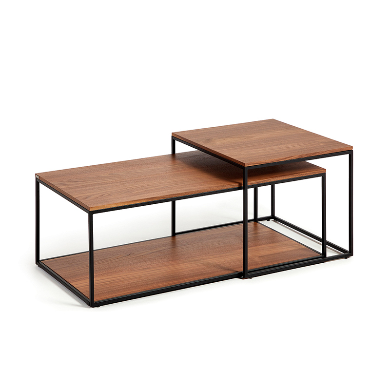 Yoana Комплект из 2 столиков из орехового шпона и черного металла