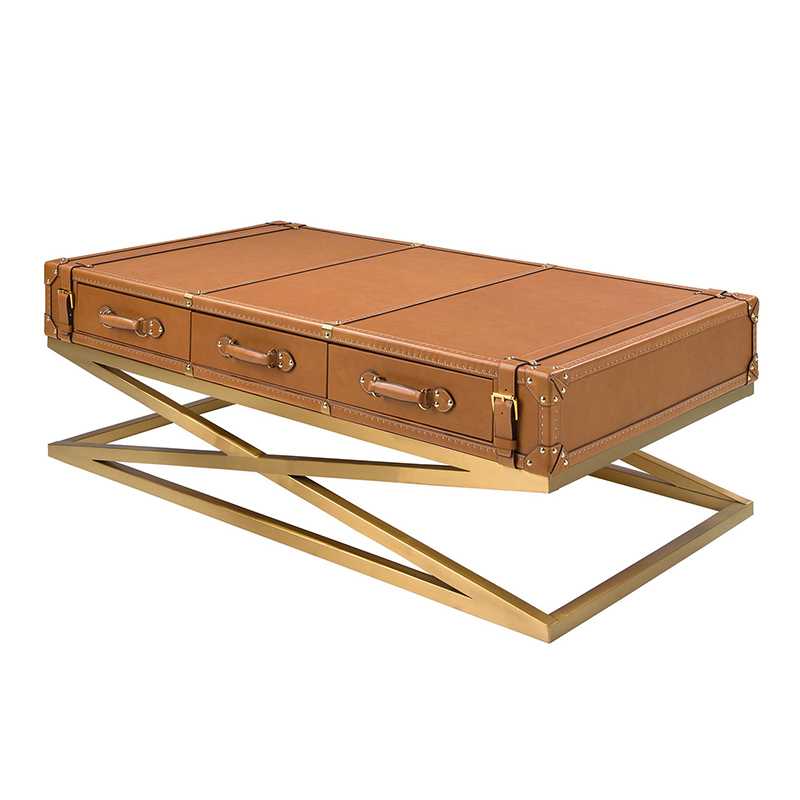 Запросить индивидуальное предложениеПрямоугольный журнальный столик современного дизайна из коровьей кожи. Ножки из нержавеющей стали золотистого цвета придадут вашему дому современный и авангардный вид, который вы ищете. В нем предусмотрено большое пространство для хранения вещей с 3 ящиками с системой открывания с помощью ручки-язычка и доводчиком.