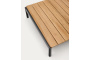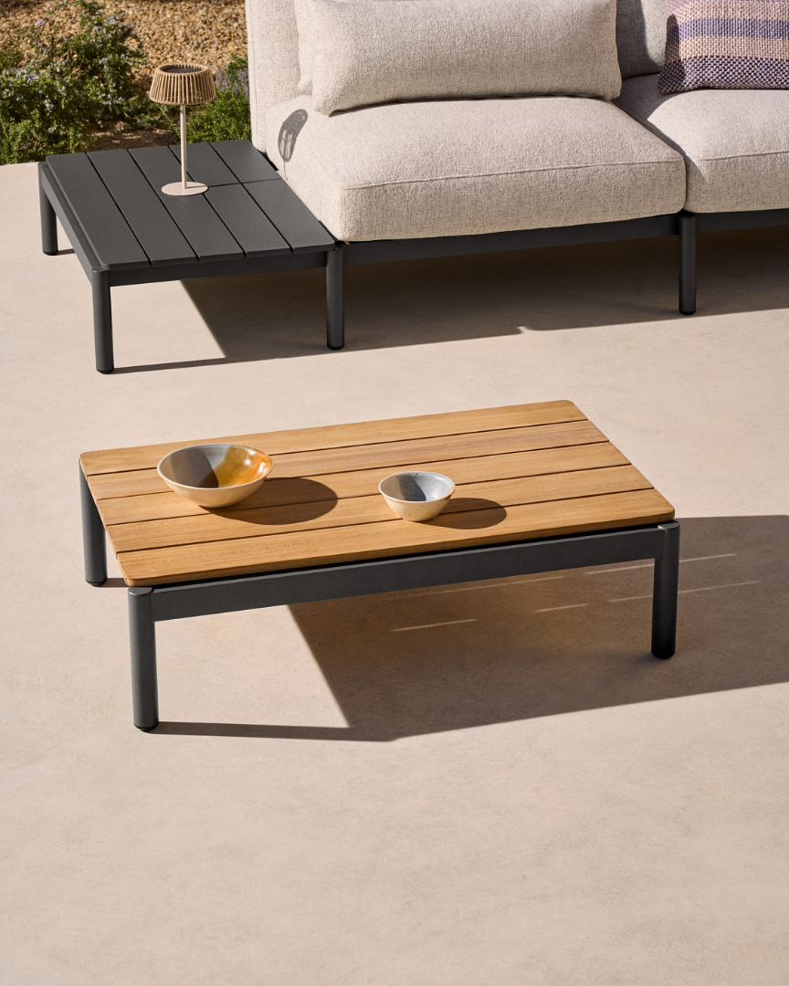 Алюминиевый журнальный столик со столешницей из тика сочетает в себе функциональность, дизайн и долговечность, чтобы улучшить любое открытое пространство. Специально разработанный для Kave Home by Made Studio, его алюминиевый каркас легкий, но невероятно прочный, что обеспечивает долгосрочное использование на открытом воздухе. Устойчивый к ржавчине, коррозии и вредным ультрафиолетовым лучам, он создан, чтобы выдерживать непогоду. Столешница из тика добавляет тепла и изысканности, известная своей исключительной долговечностью и устойчивостью в уличных условиях. Этот высококачественный материал легко справляется с влагой, обеспечивая надежность даже в самых суровых условиях.