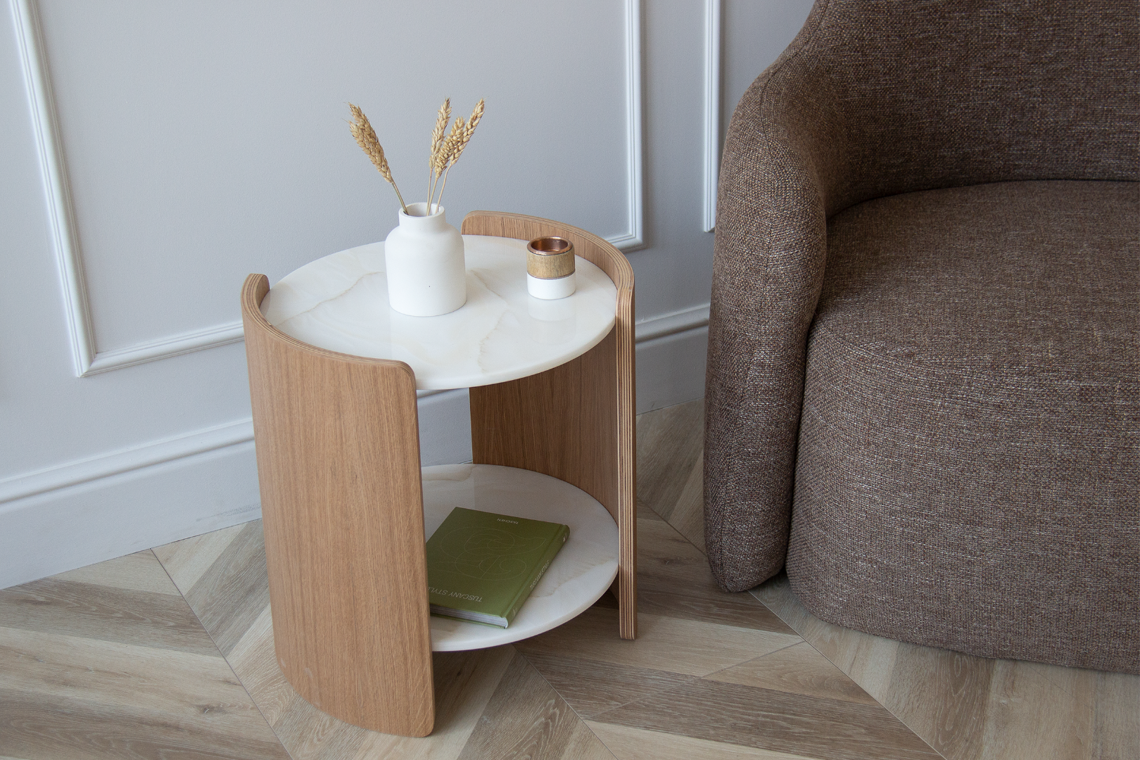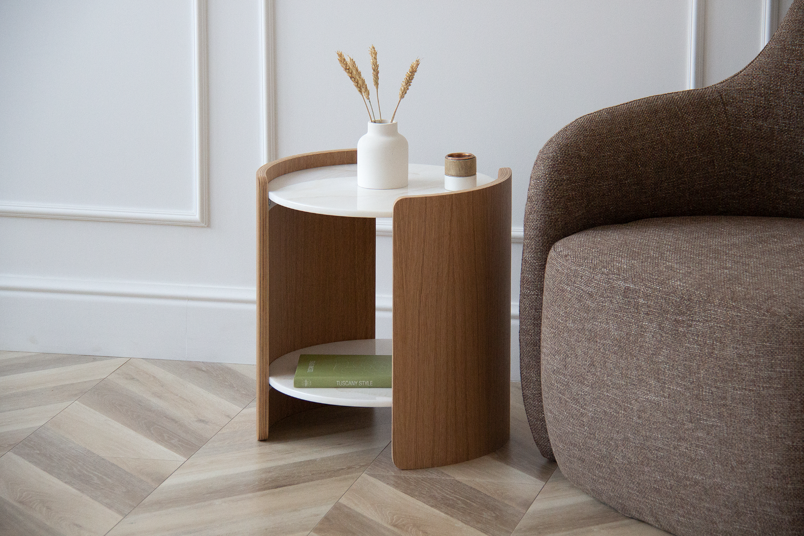 Столик Lagom Stone D 43 см высота 45 см (камень LC, натуральный дуб)