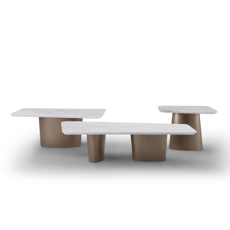 К столику есть дополнение в виде двух столиков других размеров. Такая группа из трех столов привнесет в помещение большего стиля и функционала, а также, интересную игру высот.