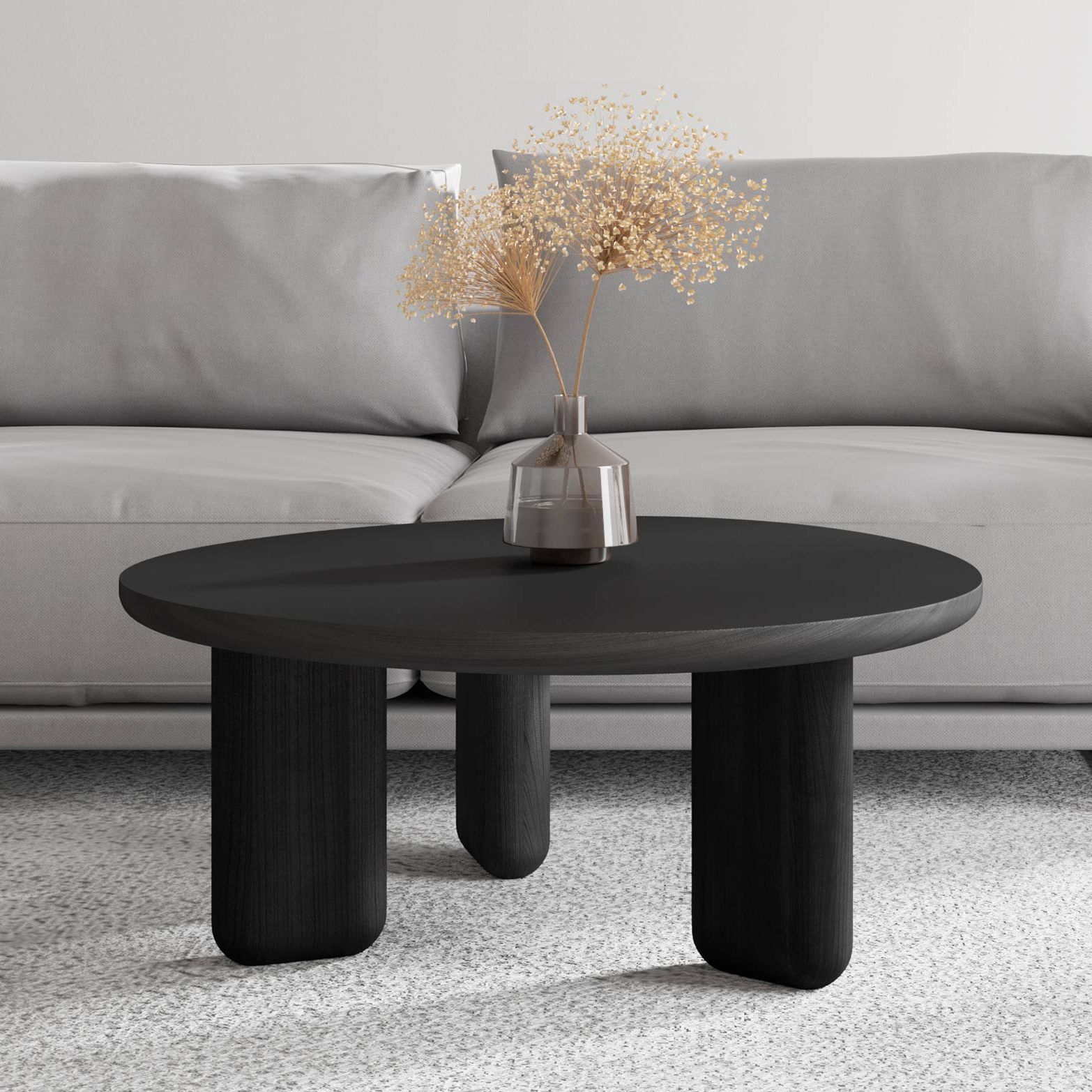Столешница со скругленными углами диаметром 790 мм и толщиной 40 мм выполнена из МДФ, облицованного суперматовым пластиком fenix черного цвета.