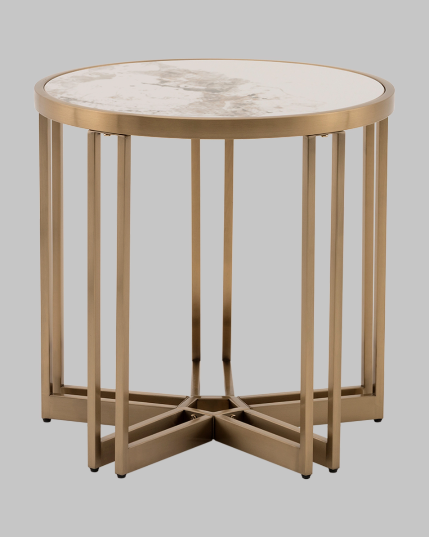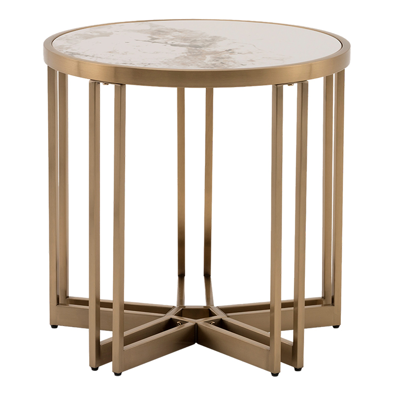 Журнальный столик Алиада 90х90 см светлая керамика сталь шампань