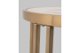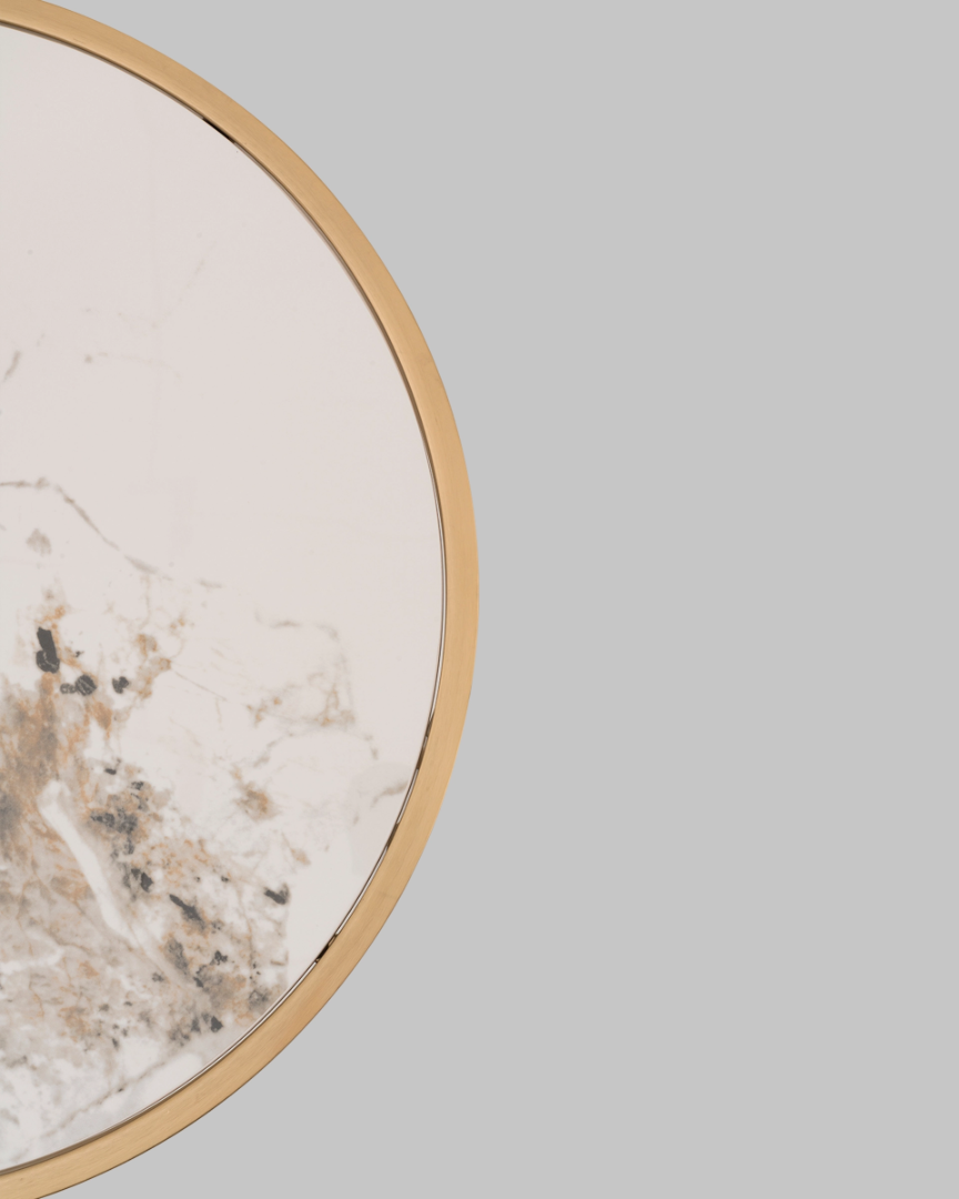 Журнальный столик Алиада станет ярким акцентом в интерьере гостиной, спальни или зоны отдыха. Его круглая столешница из спеченного камня в светлой керамической отделке создает утончённый образ, а металлическое основание цвета шампань придает композиции изысканность и визуальную лёгкость.