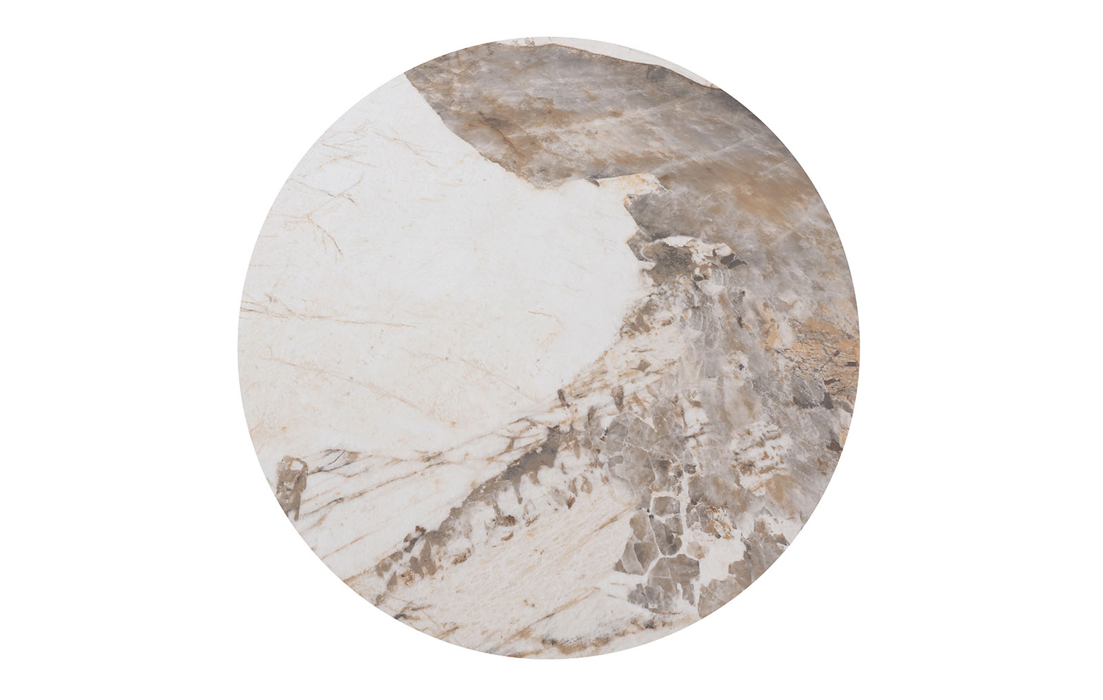 Круглая столешница состоит из керамики толщиной 12 мм.
