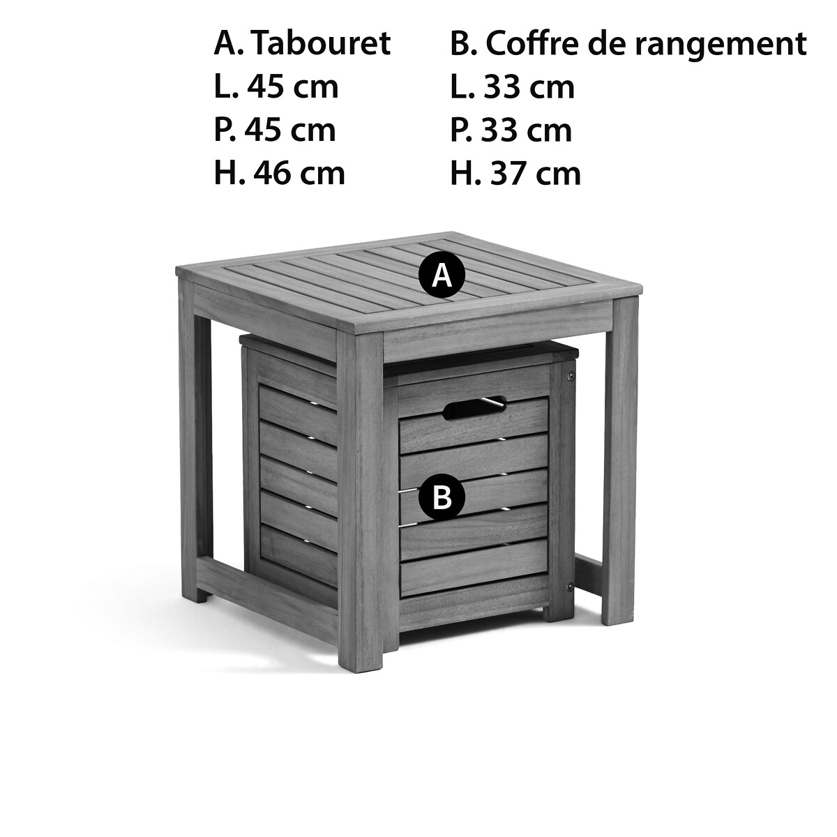 • Табурет и ящик для хранения из акации, натуральный цвет с отделкой маслом. Древесина с сертификатом FSC®