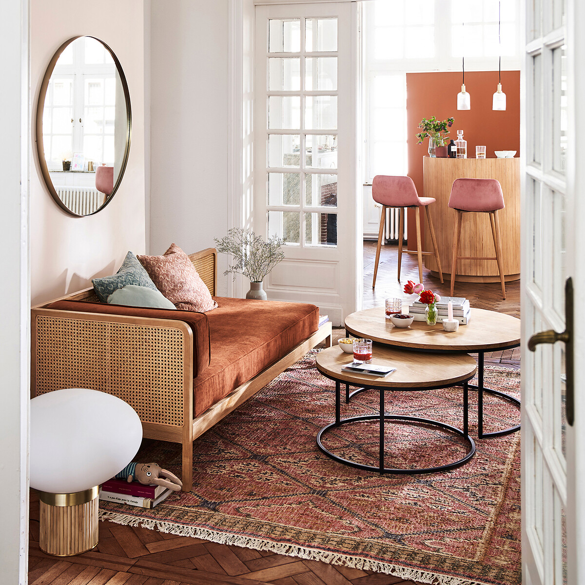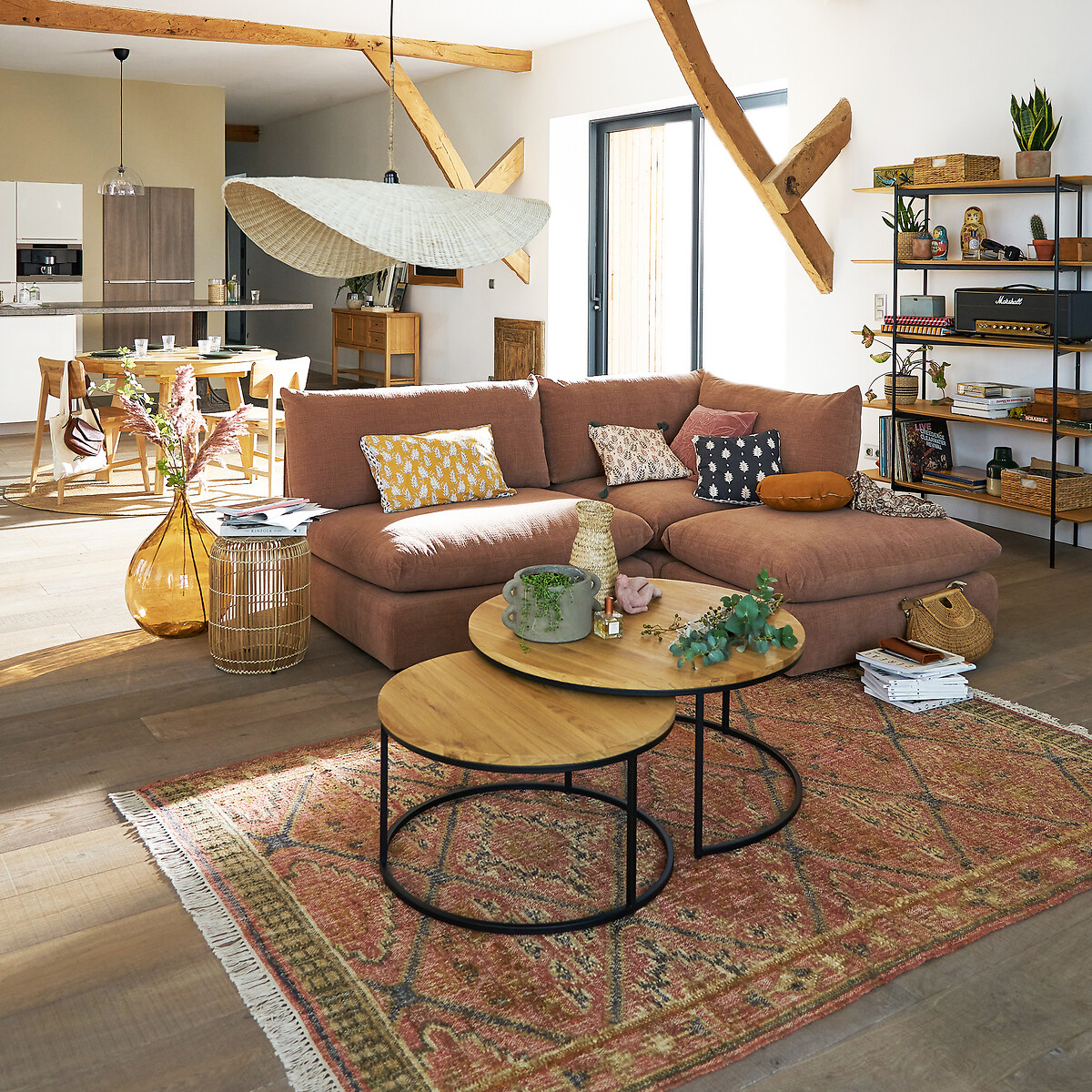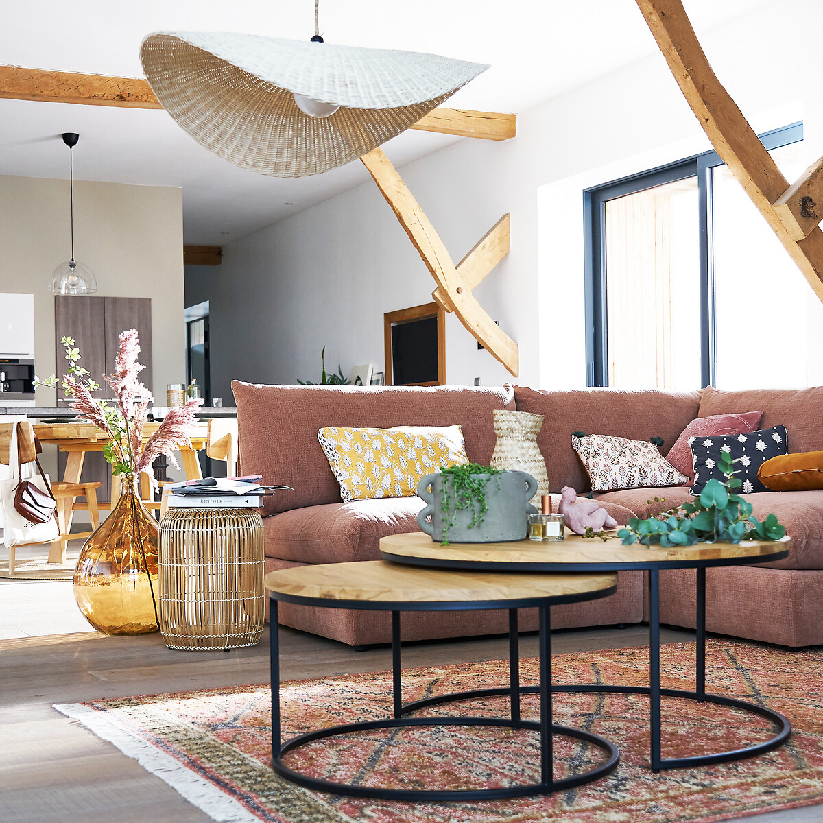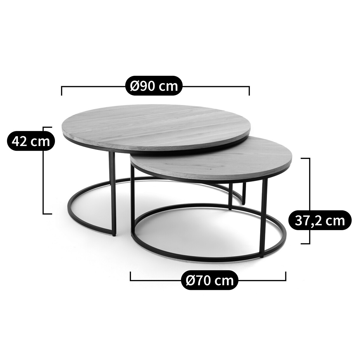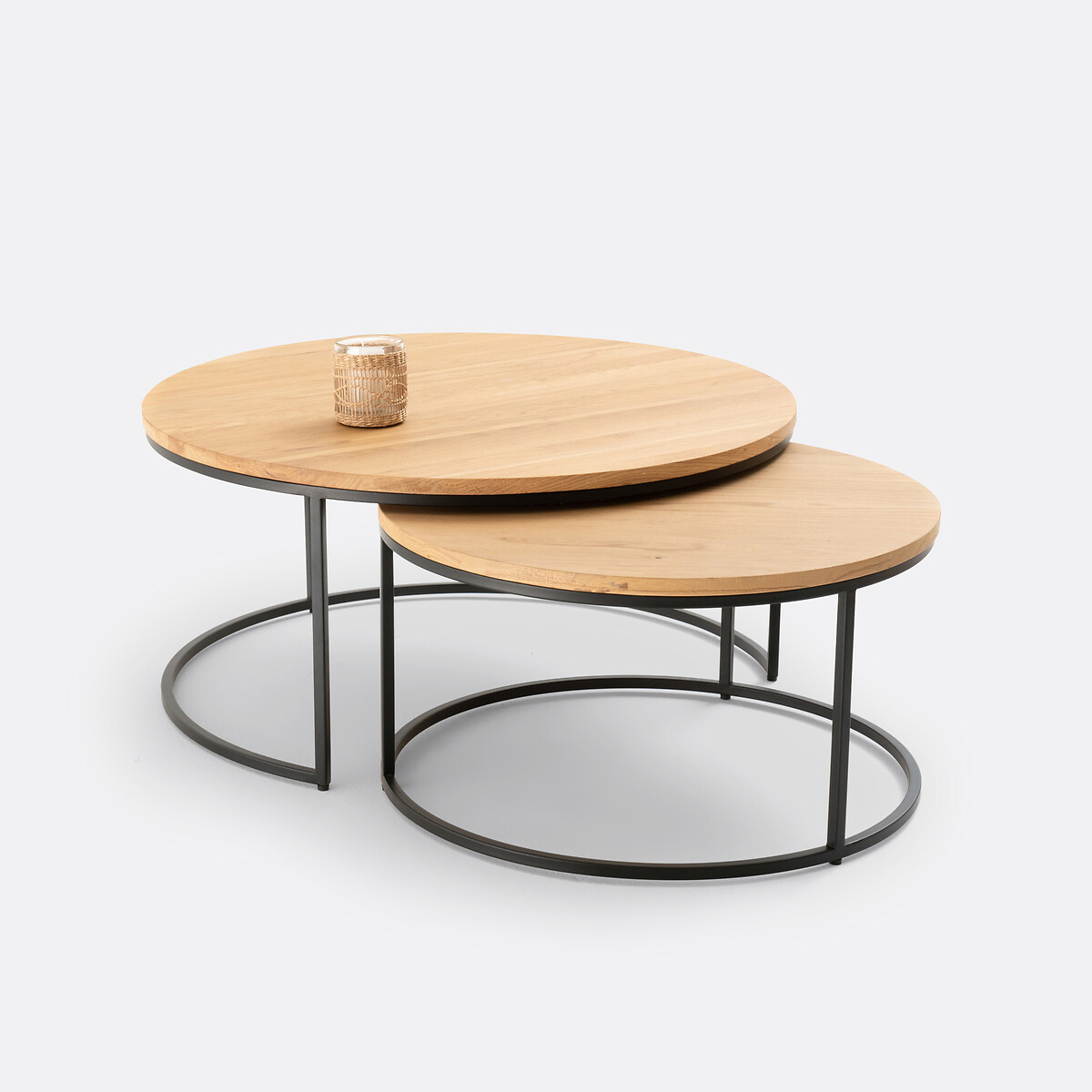 Комплект из 2 больших журнальных столиков вставляемых друг в друга из дуба Vova единый размер бежевый