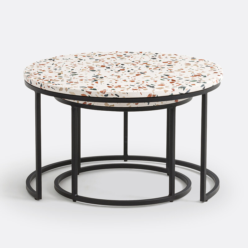 Комплект из 2 штабелируемых столов журнальных из терраццо Herv единый размер белый