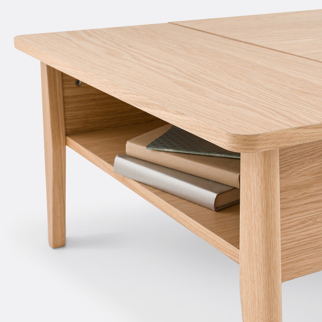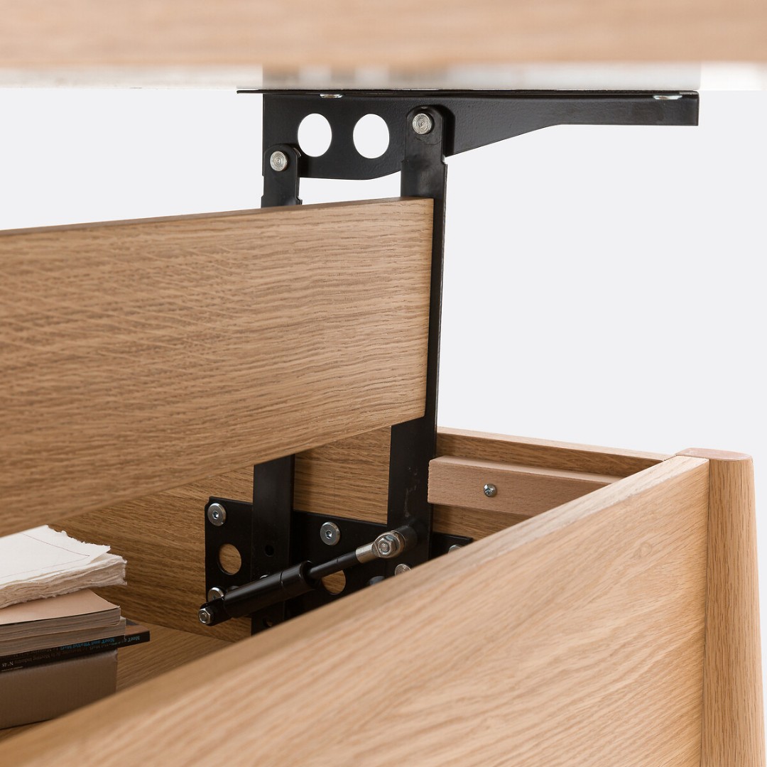 • Многофункциональный: больше не нужно выбирать между журнальным и письменным столом. Он трансформируется за одно мгновение (достаточно поднять столешницу).