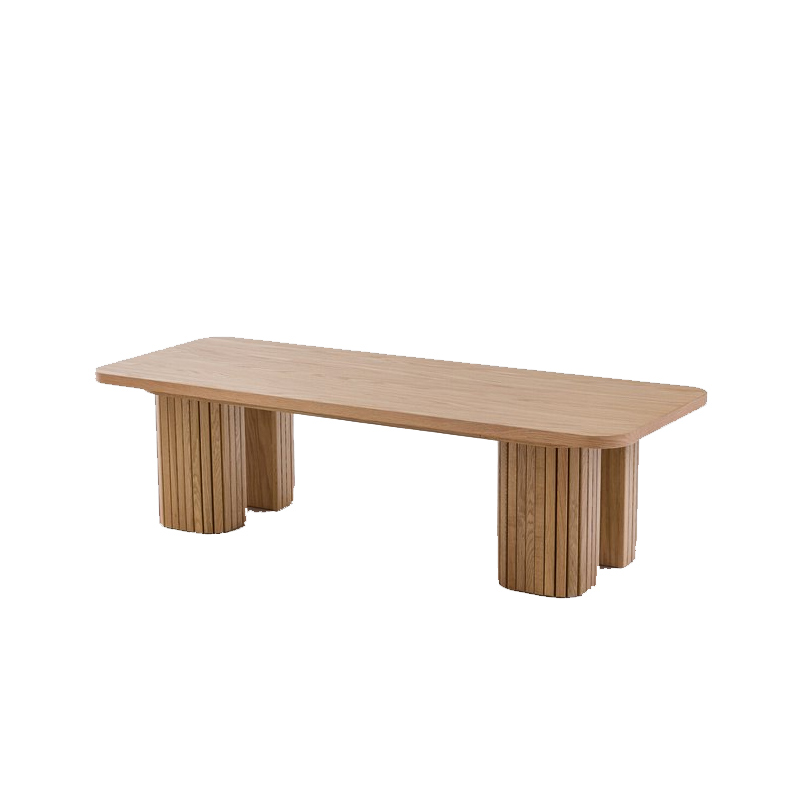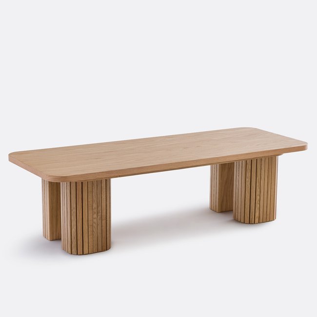 "Журнальный столик Latti выделяется своими простыми, округлыми и элегантными линиями. Деревянные планки украшают широкие ножки, создавая графическую линию, добавляя изгибы и ритм."