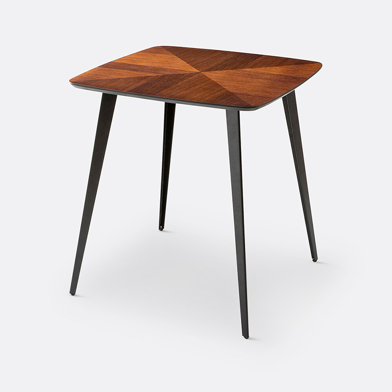 • Квадратная столешница из МДФ, закругленные края, мозаика из ореха, покрытие нитролаком