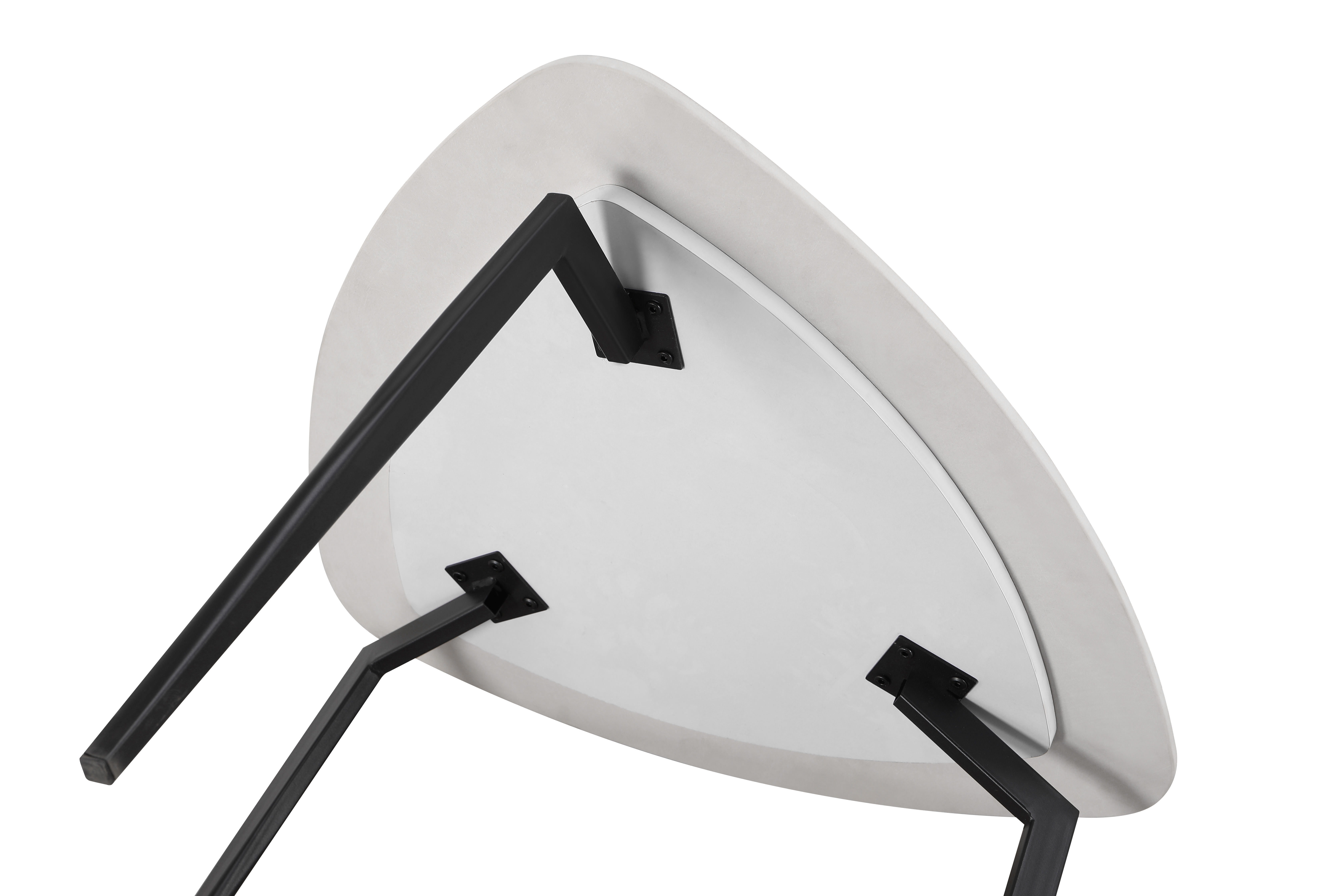 Столешница выполнена из керамики в благородном светлом оттенке с имитацией мраморной текстуры. Это не только визуально привлекательное решение, но и практичное: керамика устойчива к царапинам, высокой температуре и легко очищается. Ножки из металла обеспечивают надёжность и долгий срок службы изделия.