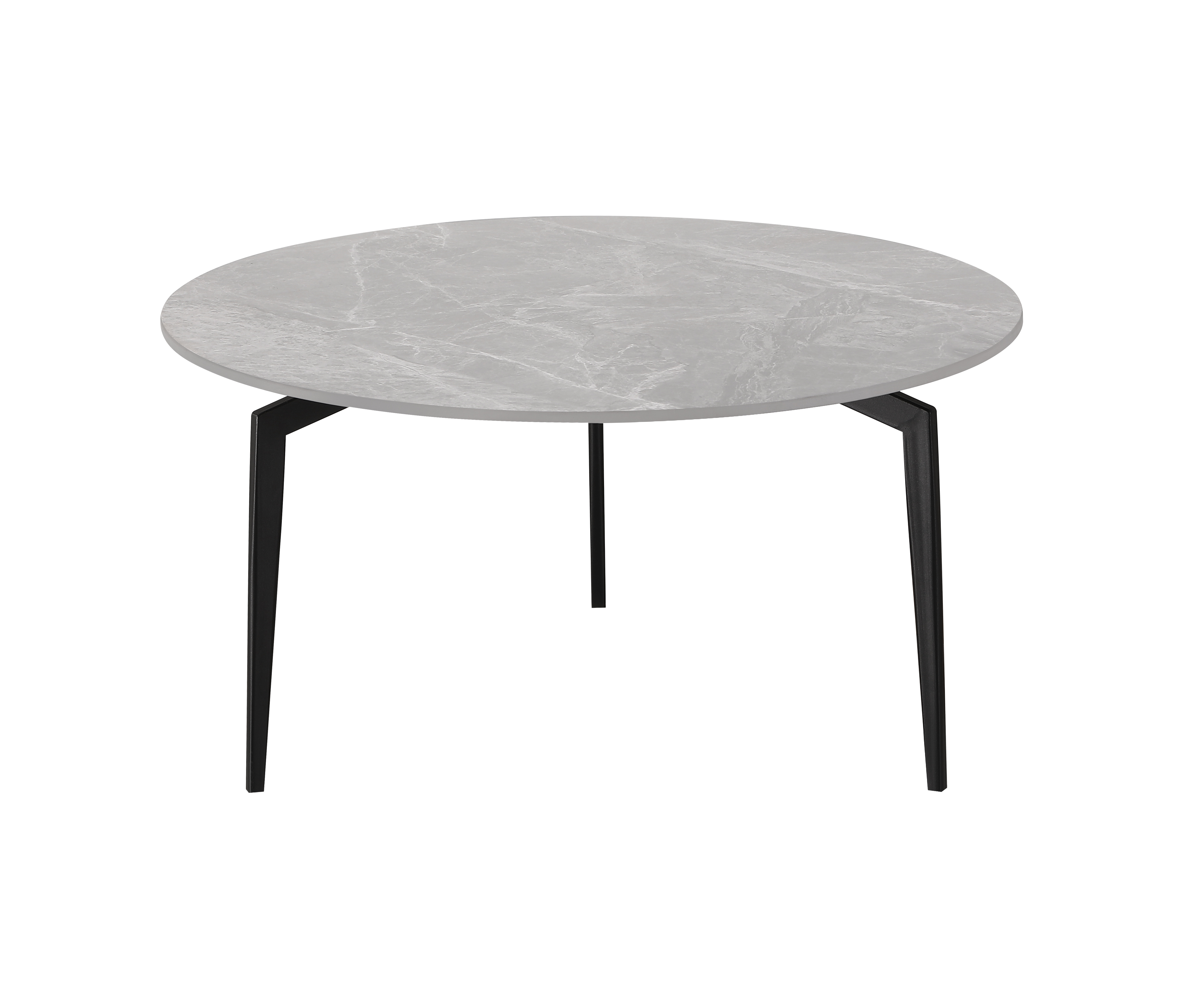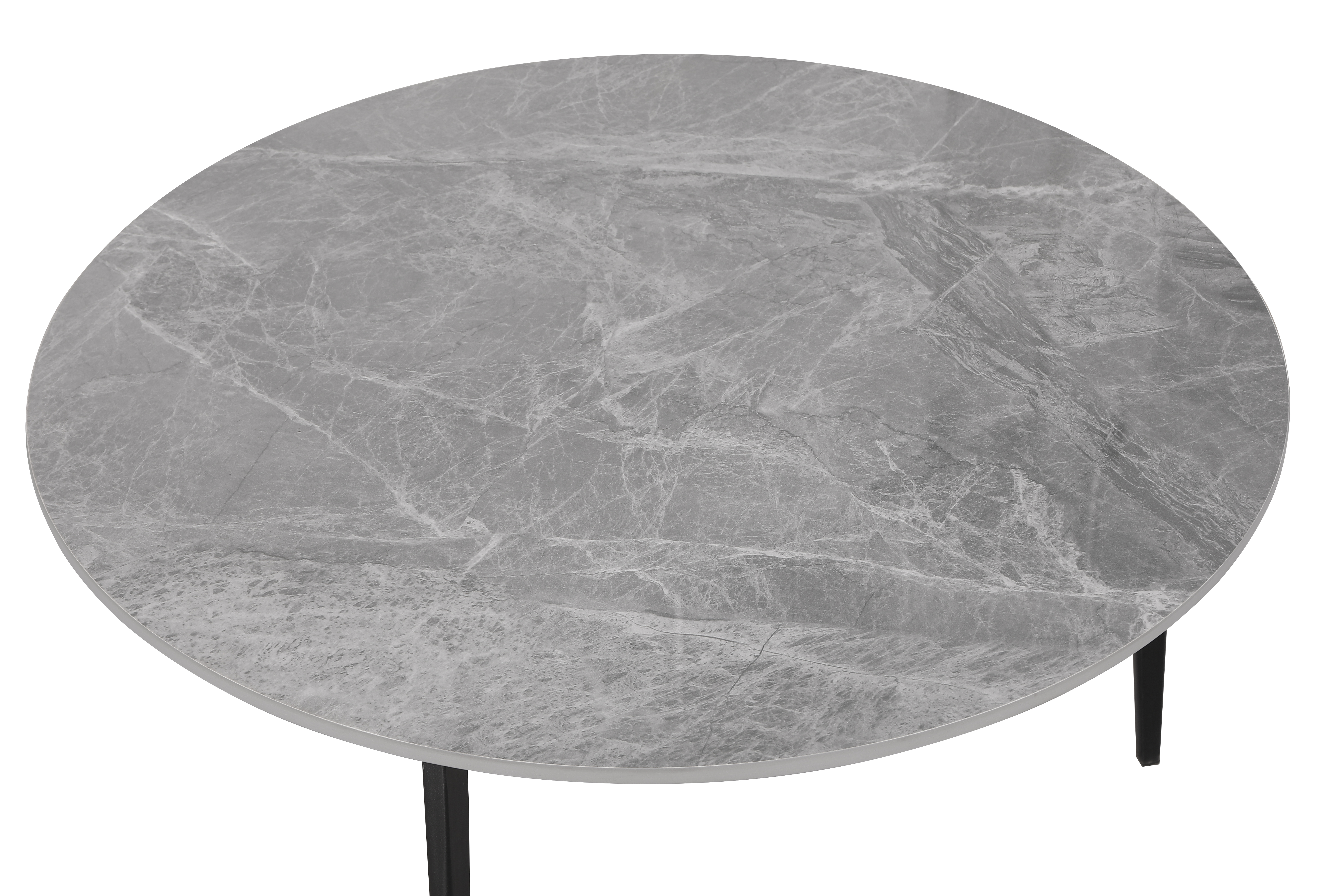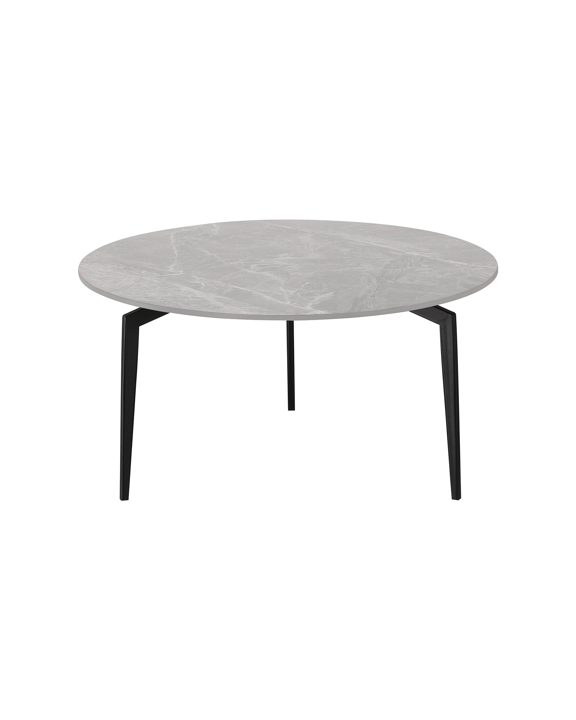 Столешница выполнена из керамики в благородном сером оттенке с имитацией мраморной текстуры. Это не только визуально привлекательное решение, но и практичное: керамика устойчива к царапинам, высокой температуре и легко очищается. Ножки из металла обеспечивают надёжность и долгий срок службы изделия.