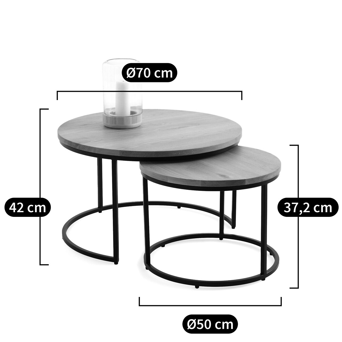 Запросить индивидуальное предложениеКомплект из 2 журнальных столов Vova. Идеальное сочетание дуба и металла в строгом дизайне: эти журнальные столы округлой формы несомненно подойдут к любому стилю вашей гостиной.