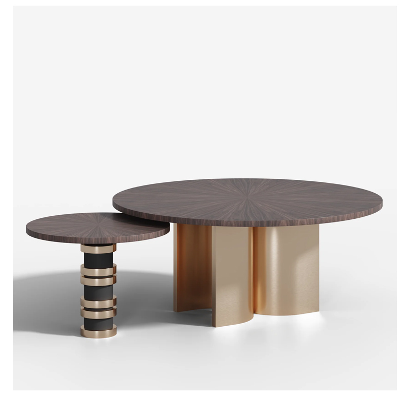 - корневой срез северо-американского ореха в технике "маркетри" в лучевой раскладке