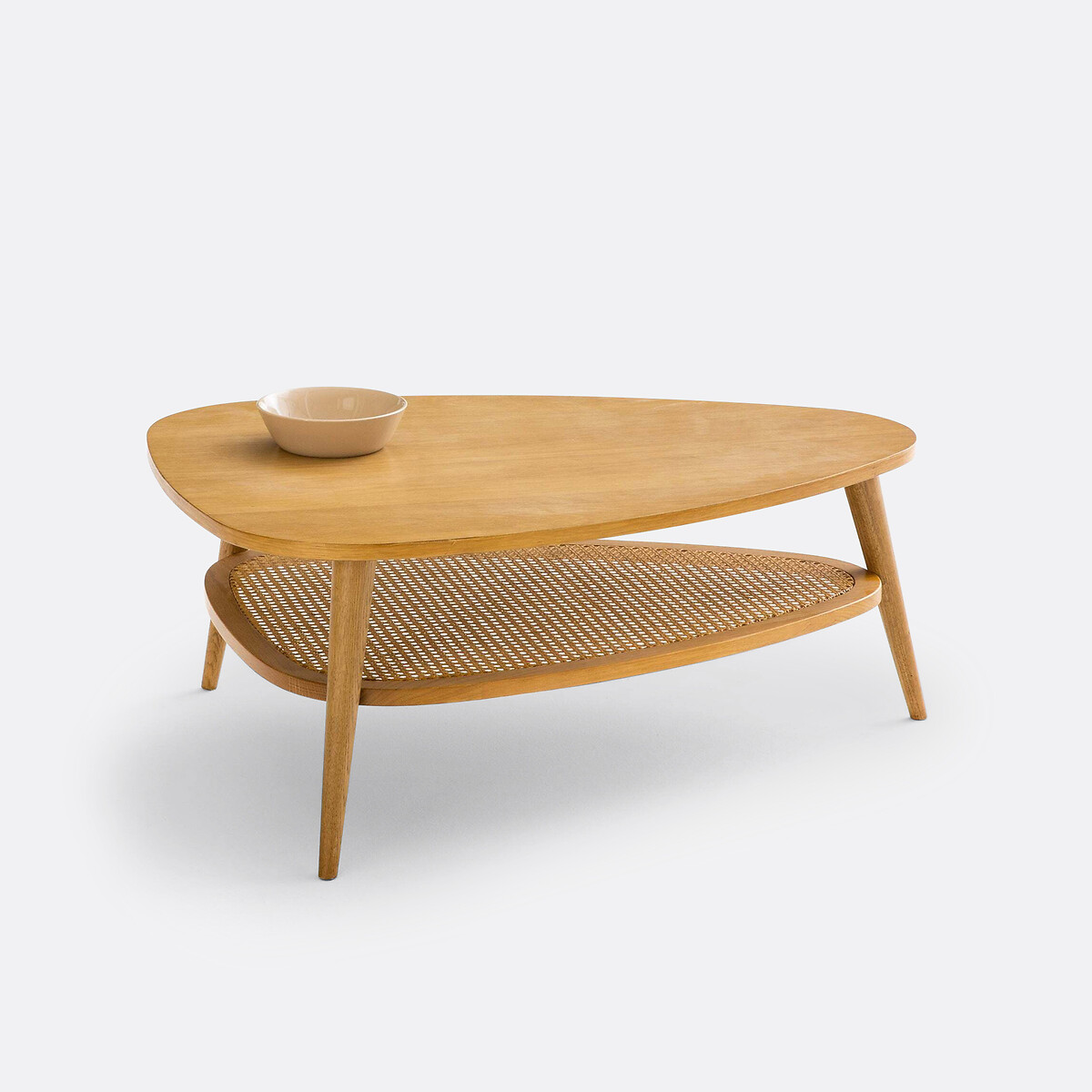 Запросить индивидуальное предложениеЖурнальный столик Quilda. Декоративный журнальный столик Quilda отличается дизайном в винтажном стиле и сочетает дуб и плетеный ротанг, натуральные цвета и две столешницы.
