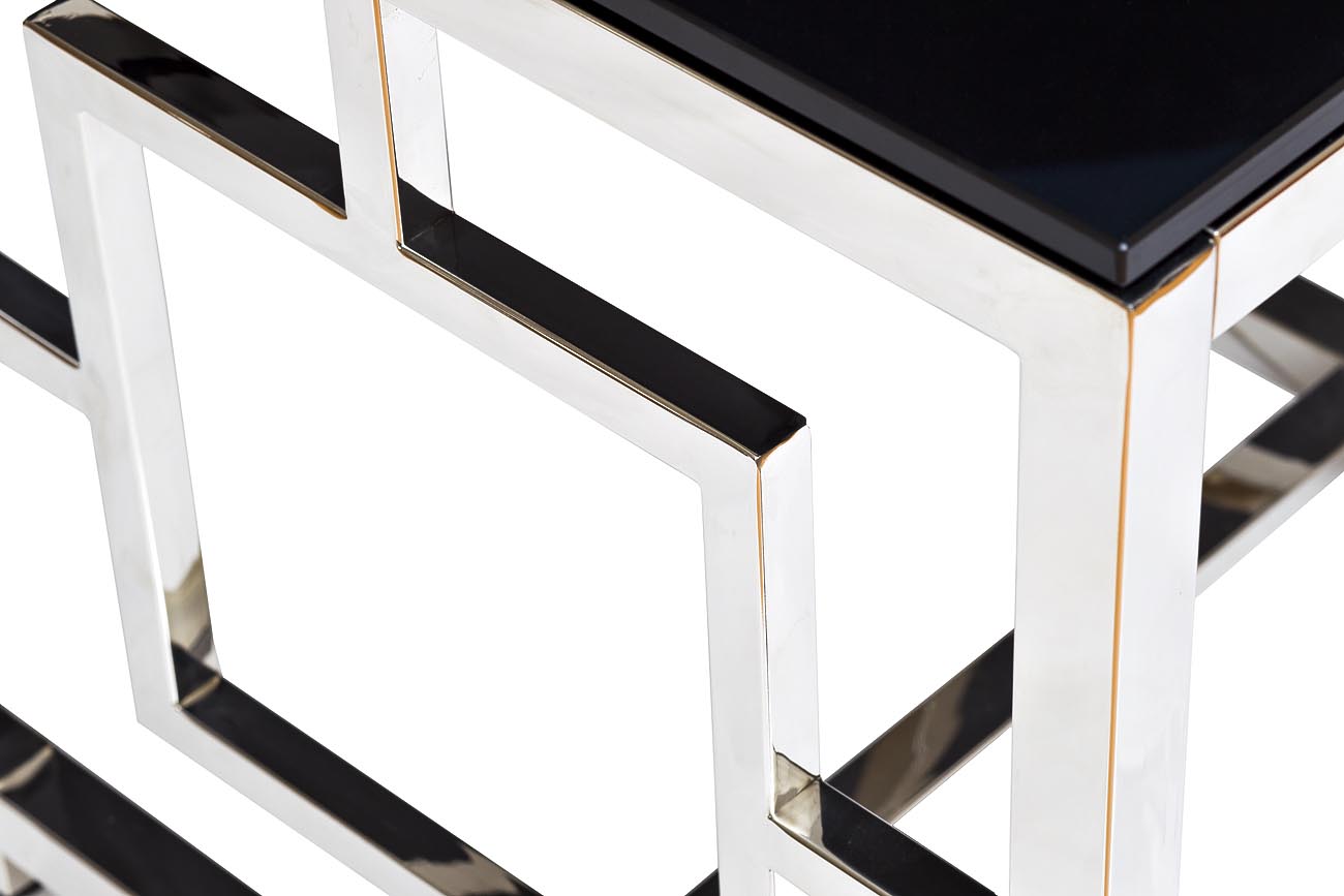 Запросить индивидуальное предложениеМеталлический журнальный стол с черной столешницей способен сделать любое помещение более стильным и уютным. Сочетание основания, выполненного из хромированного метала, с черным стеклом, делает такое изделие уникальным в своей гармонии твердости стали и хрупкости столешницы. Впрочем, тем, кто решил купить журнальный стол в Москве и обратил внимание именно на эту модель, вовсе не стоит опасаться того, что его легко повредить. На самом деле такое стекло отличается повышенной прочностью благодаря особенностям производства, что делает стол журнальный черный еще более востребованным среди настоящих ценителей современного искусства в интерьере. У нас вы можете приобрести консоль арт. GY-CST2051212 из этой же серии.