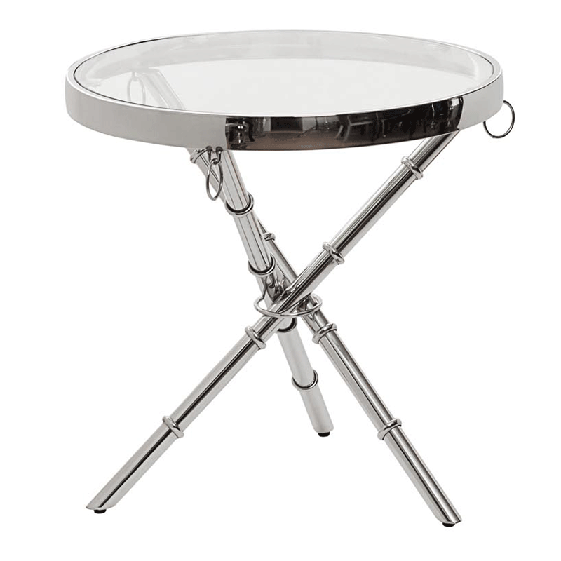 Запросить индивидуальное предложениеЛаконичный металлический журнальный столик станет эффектным акцентом интерьера гостиной, оформленной в стилистике ар-деко. Он выглядит весьма интересно за счет трех хромированных ножек, выполненных в виде бамбука и соединенных кольцом. Благодаря такой необычной конструкции круглый журнальный столик визуально легкий и при этом достаточно устойчивый. Он гармонично сочетается с современной мебелью и прекрасно вписывается в интерьерное пространство. На прозрачной столешнице из закаленного стекла красиво смотрятся вазы с цветами, фоторамки и другие милые вещицы. На сайте Garda Decor можно купить журнальный столик с отделкой хром и подобрать к нему предметы мебели и декора.