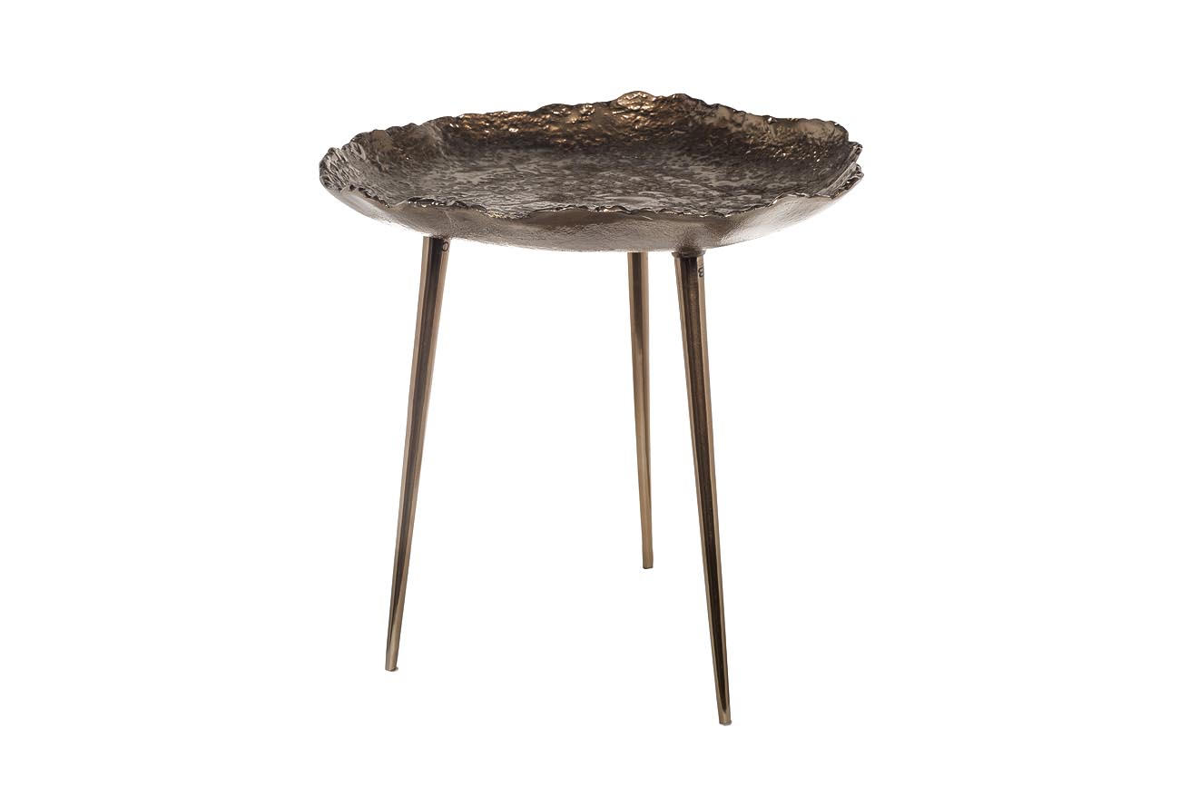 Запросить индивидуальное предложениеСамый модный тренд в дизайне интерьеров - предметы мебели и декора ручной работы, которые делают обстановку прекрасной, неповторимой и "человечной". Дизайнерский журнальный столик ручного литья как нельзя лучше отвечает модным тенденциям. Этот стол - авторское переосмысление традиций индийских ремесленников. Все неровности и изгибы металлической поверхности тщательно обработаны и зашлифованы до шелковистого блеска; изысканная ассиметрия формы подчеркивает красоту металла. Столик в восточном стиле украсит вашу гостиную или спальную комнату, словно колониальный трофей. Ваза с фруктами или кофейные чашки будут выглядеть на нем просто роскошно!