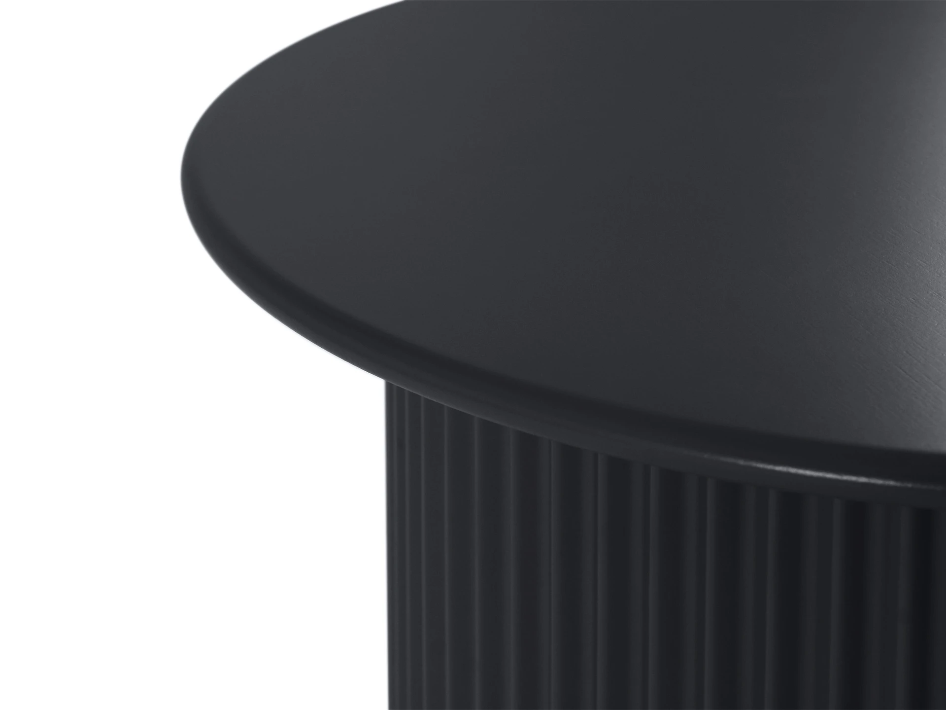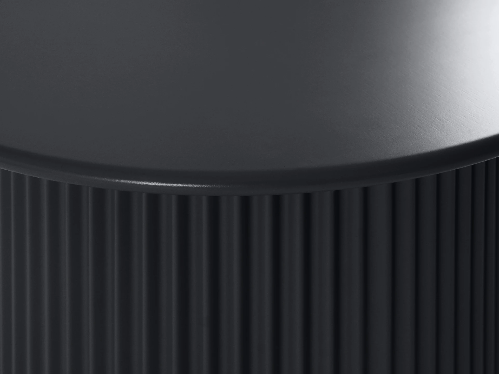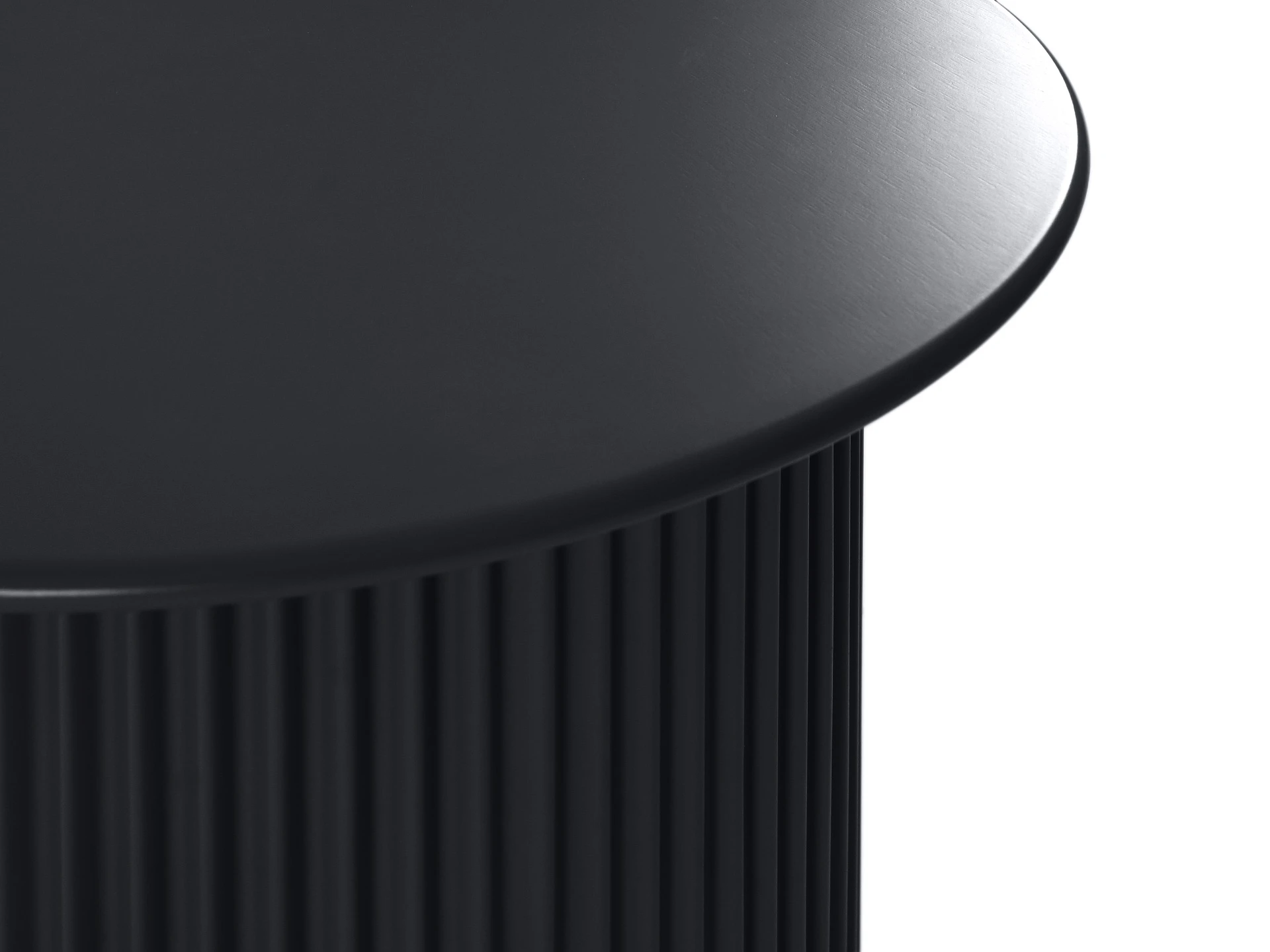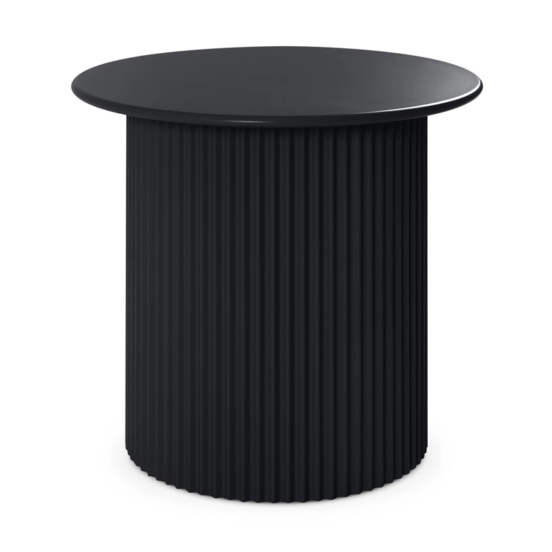 Эргономичная круглая столешница из МДФ поддерживается цилиндирическим основанием с рифлением. Что добавит фактурного разнообразия и ритма в пространство.