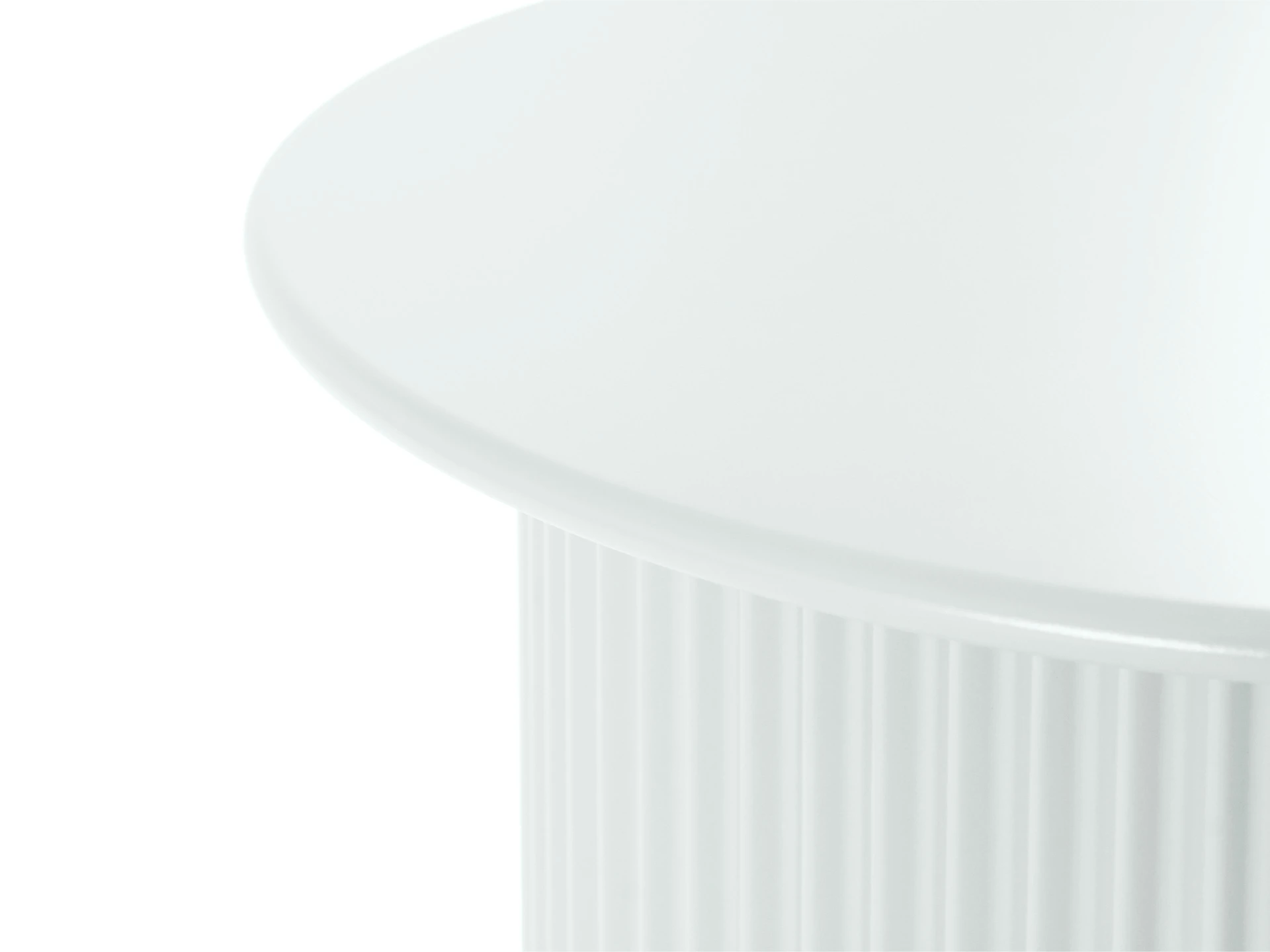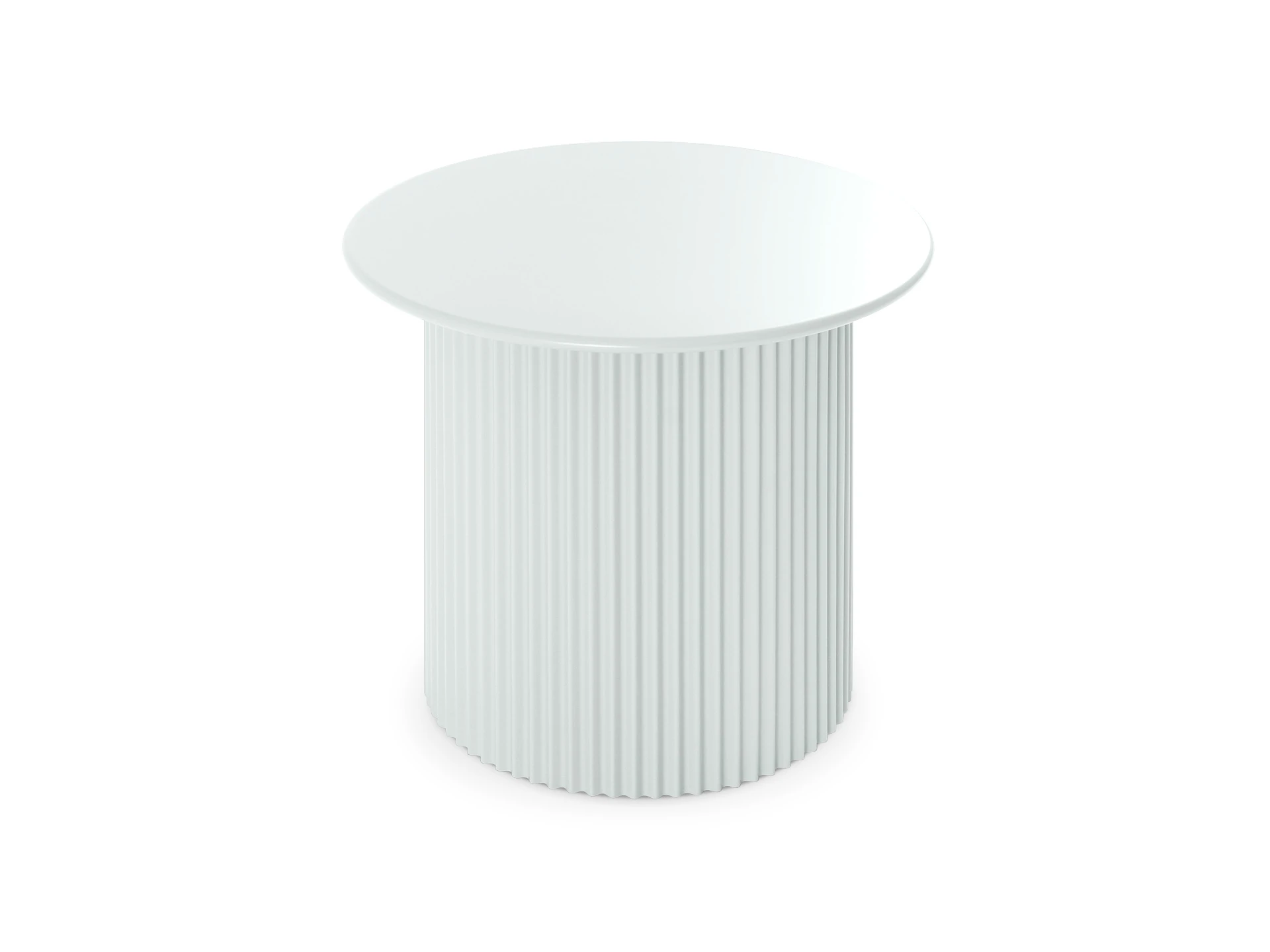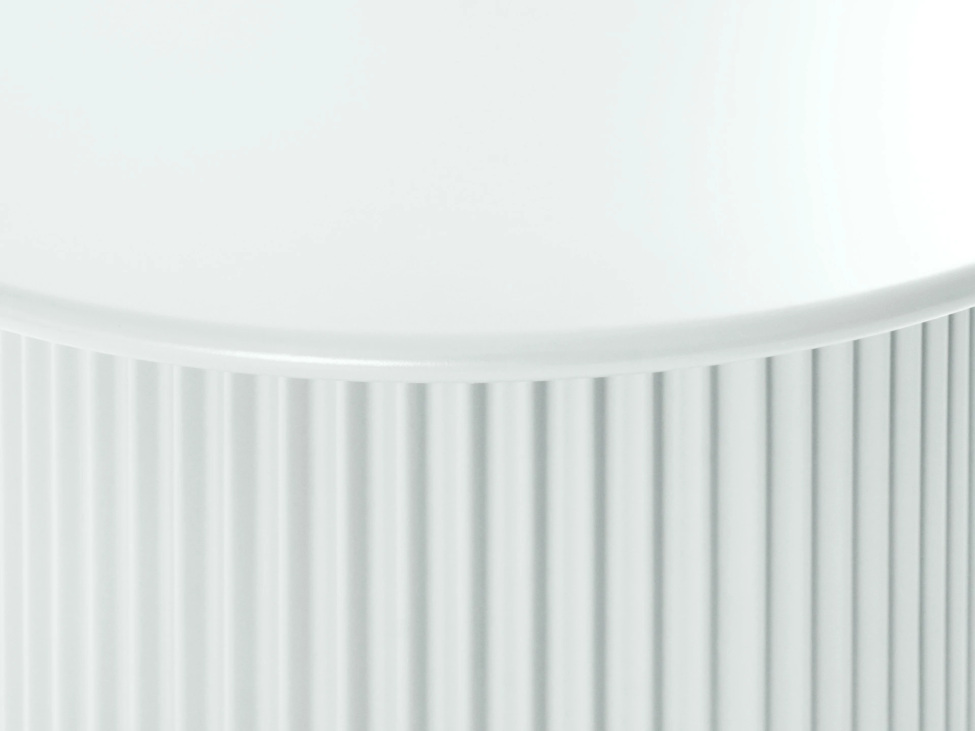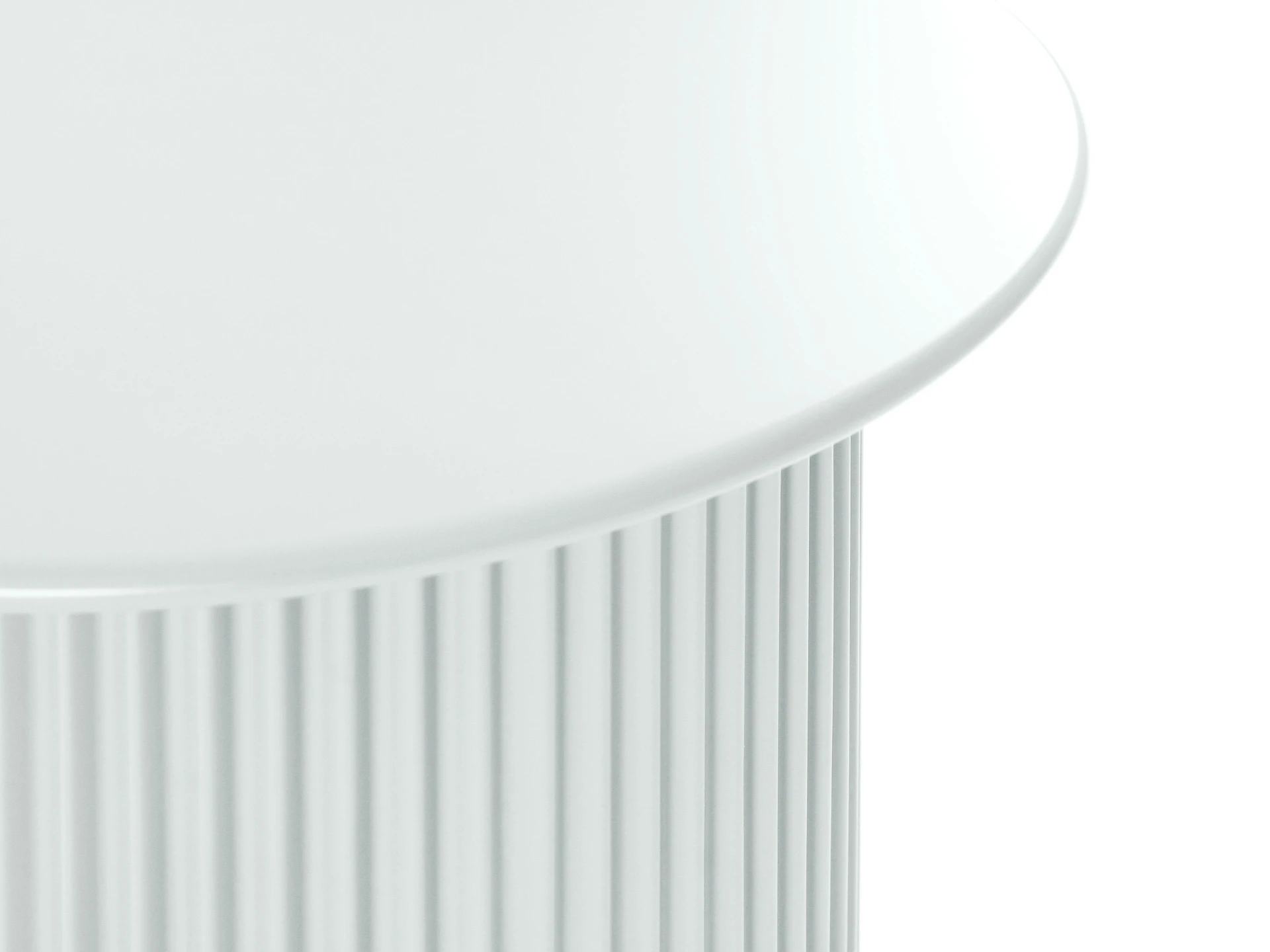 Эргономичная круглая столешница из МДФ поддерживается цилиндирическим основанием с рифлением. Что добавит фактурного разнообразия и ритма в пространство.