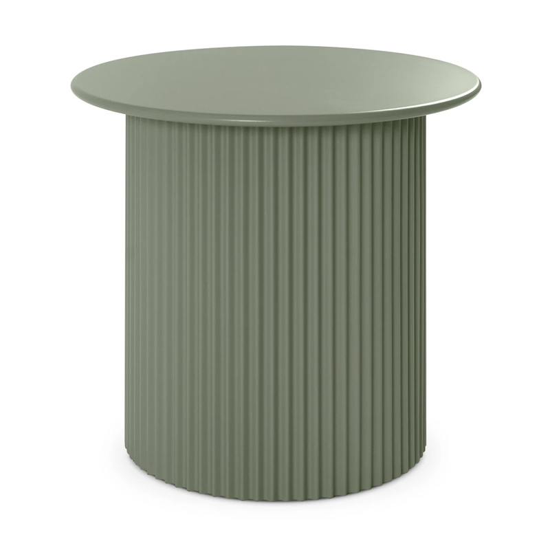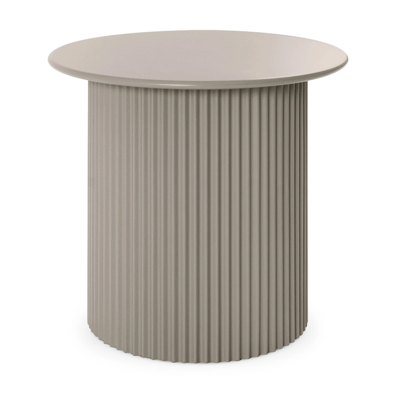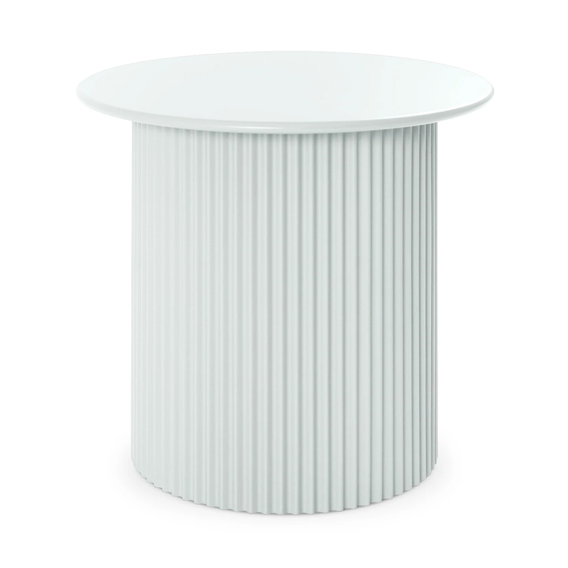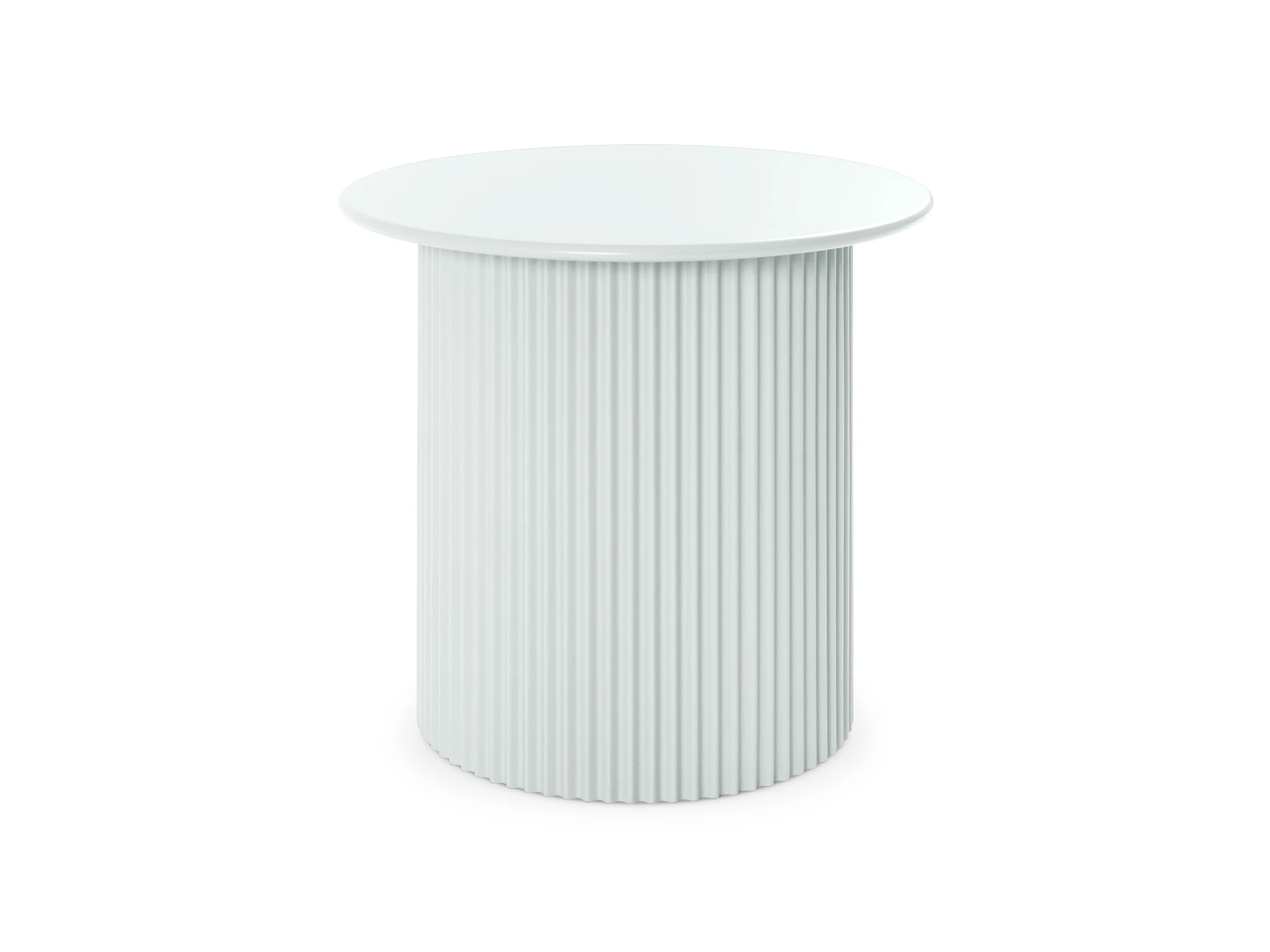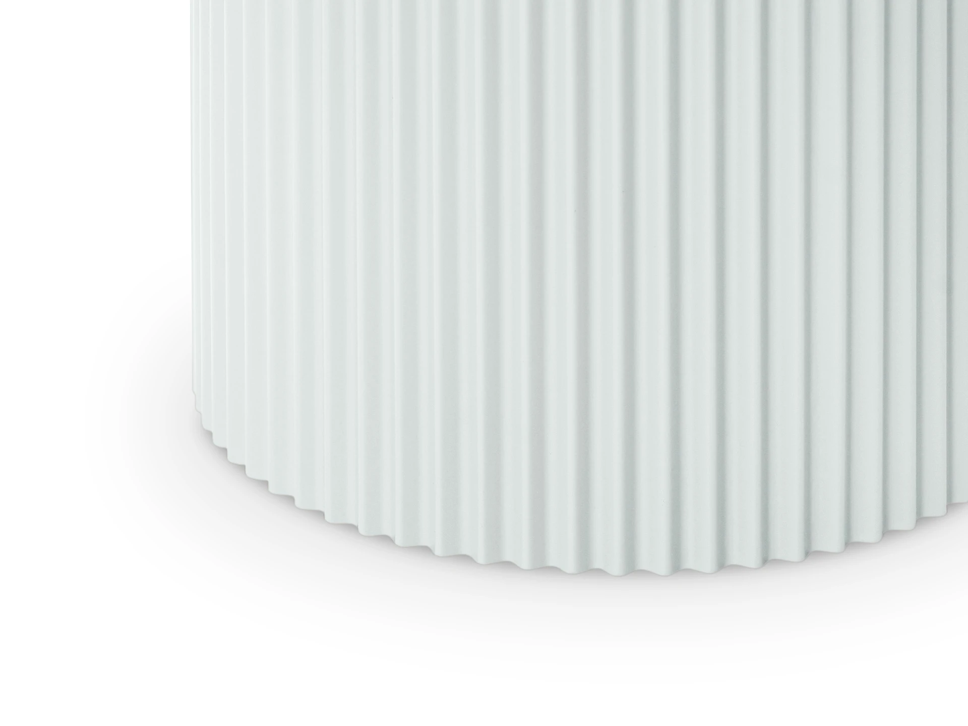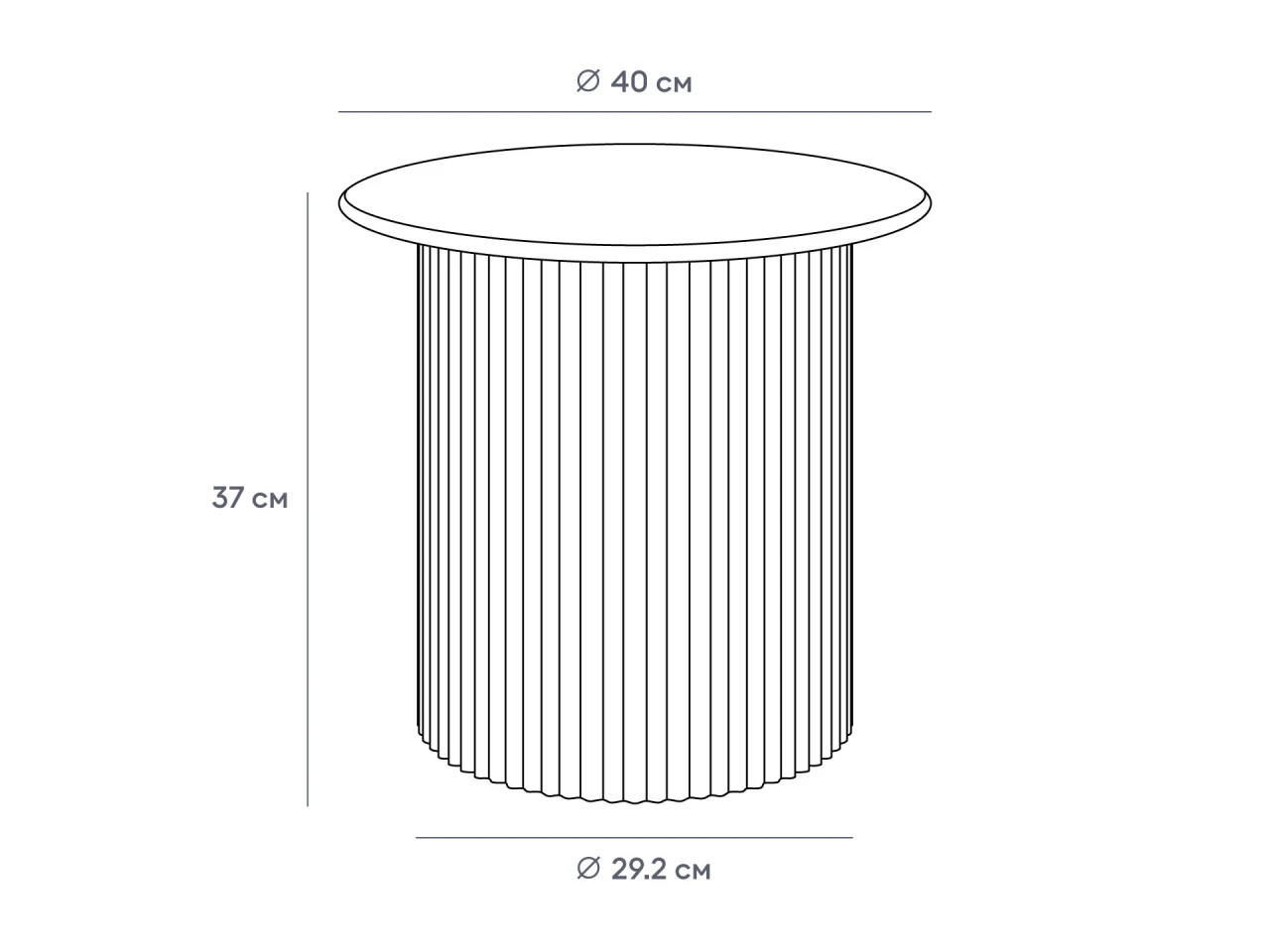 Эргономичная круглая столешница из МДФ поддерживается цилиндирическим основанием с рифлением. Что добавит фактурного разнообразия и ритма в пространство.