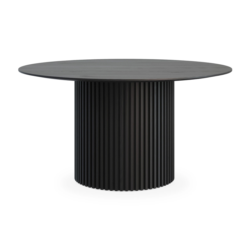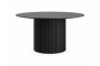 Дизайн сфокусирован на контрастном взаимодействие фактур. Цилиндрическое основание с «гофрированной поверхностью» поддерживает гладкую круглую столешницу. Рельефные углубления на ножке придают динамичности, выразительности, эффектности. С этим столиком можно создавать вариативные интерьерные комбинации, которые подчеркнут индивидуальный характер пространства. Красивый естественный рисунок внесёт в пространство частичку природной энергии. Уместен будет в любой локации от диванной зоны до спальни.