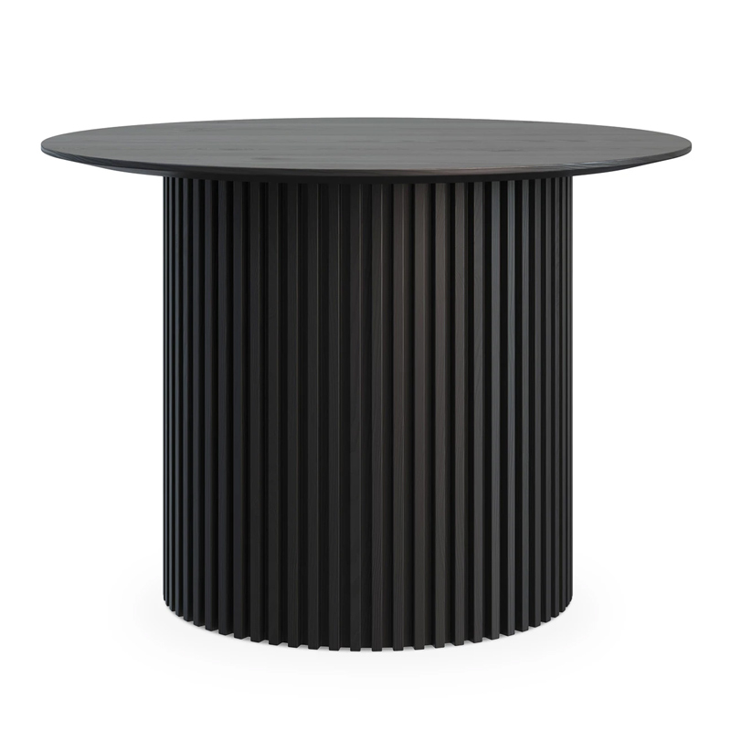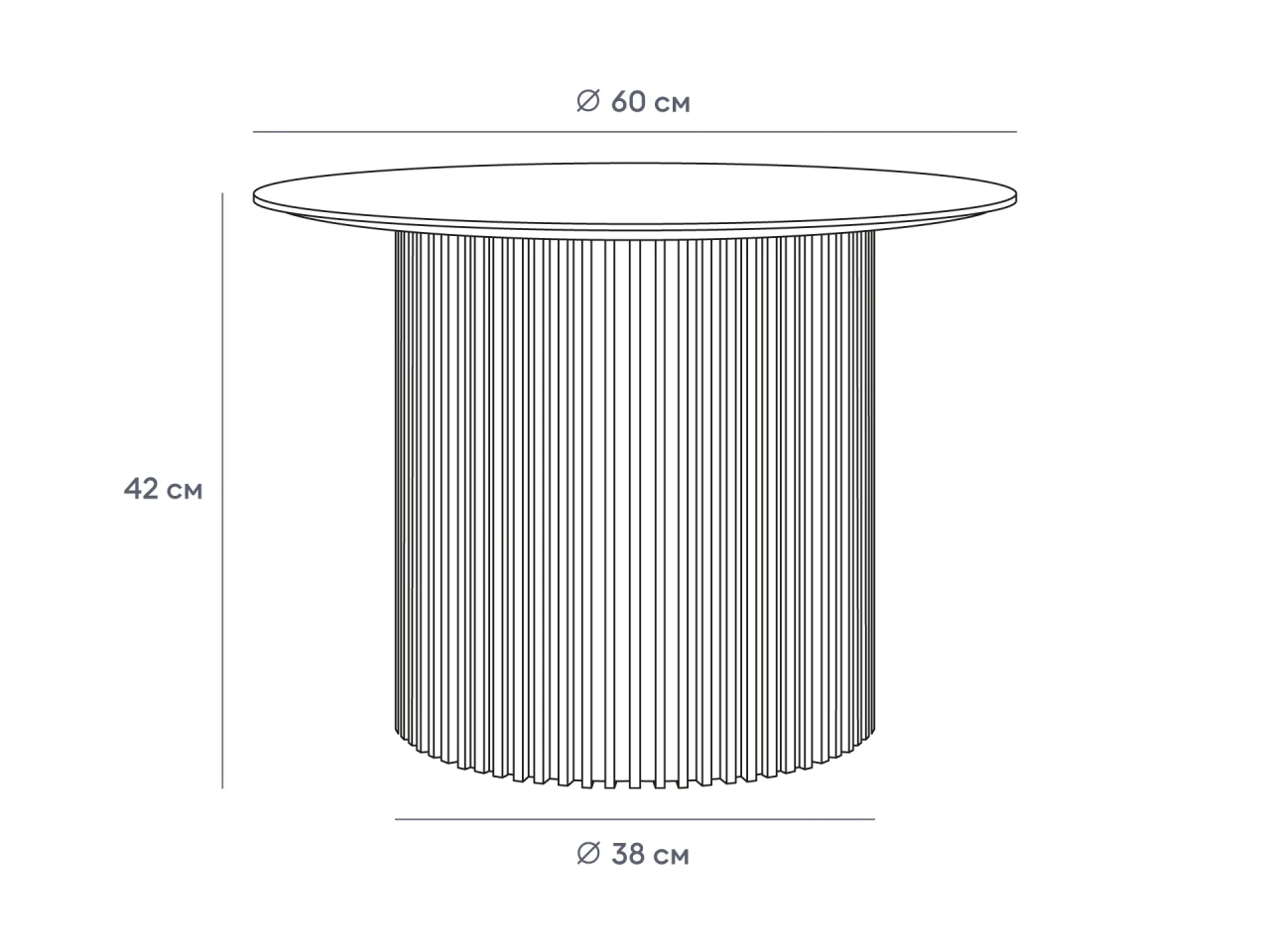 Дизайн сфокусирован на контрастном взаимодействие фактур. Цилиндрическое основание с «гофрированной поверхностью» поддерживает гладкую круглую столешницу. Рельефные углубления на ножке придают динамичности, выразительности, эффектности. С этим столиком можно создавать вариативные интерьерные комбинации, которые подчеркнут индивидуальный характер пространства. Красивый естественный рисунок внесёт в пространство частичку природной энергии. Уместен будет в любой локации от диванной зоны до спальни.