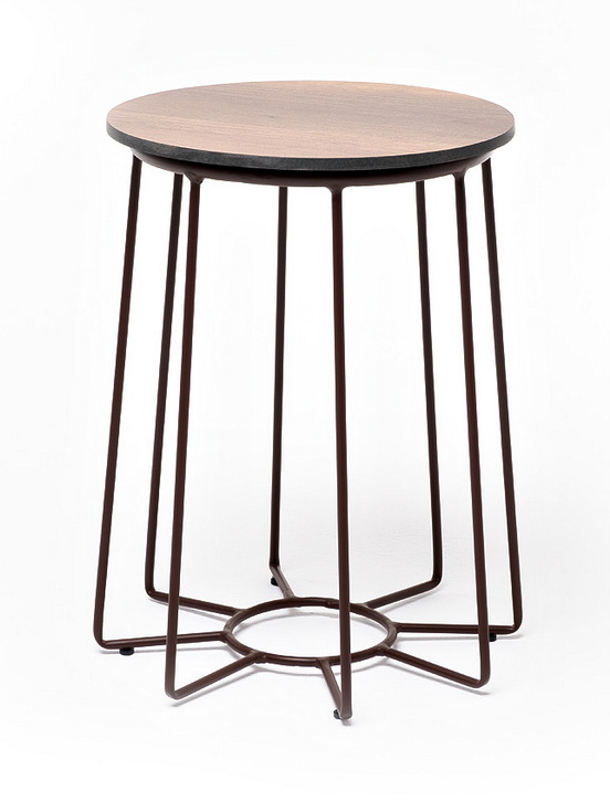 "Эквадор" журнальный стол из HPL круглый Ø40 H55, каркас из алюминия коричневый (RAL 8016) муар, цвет столешницы "дуб"