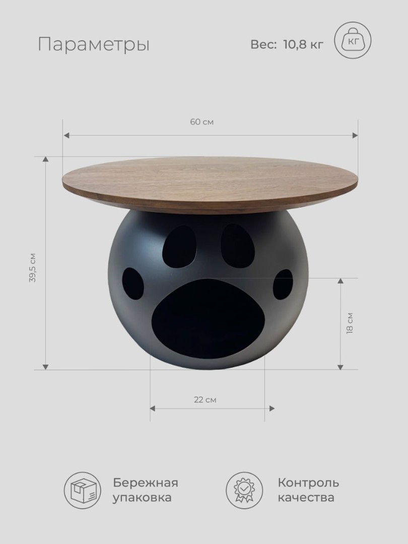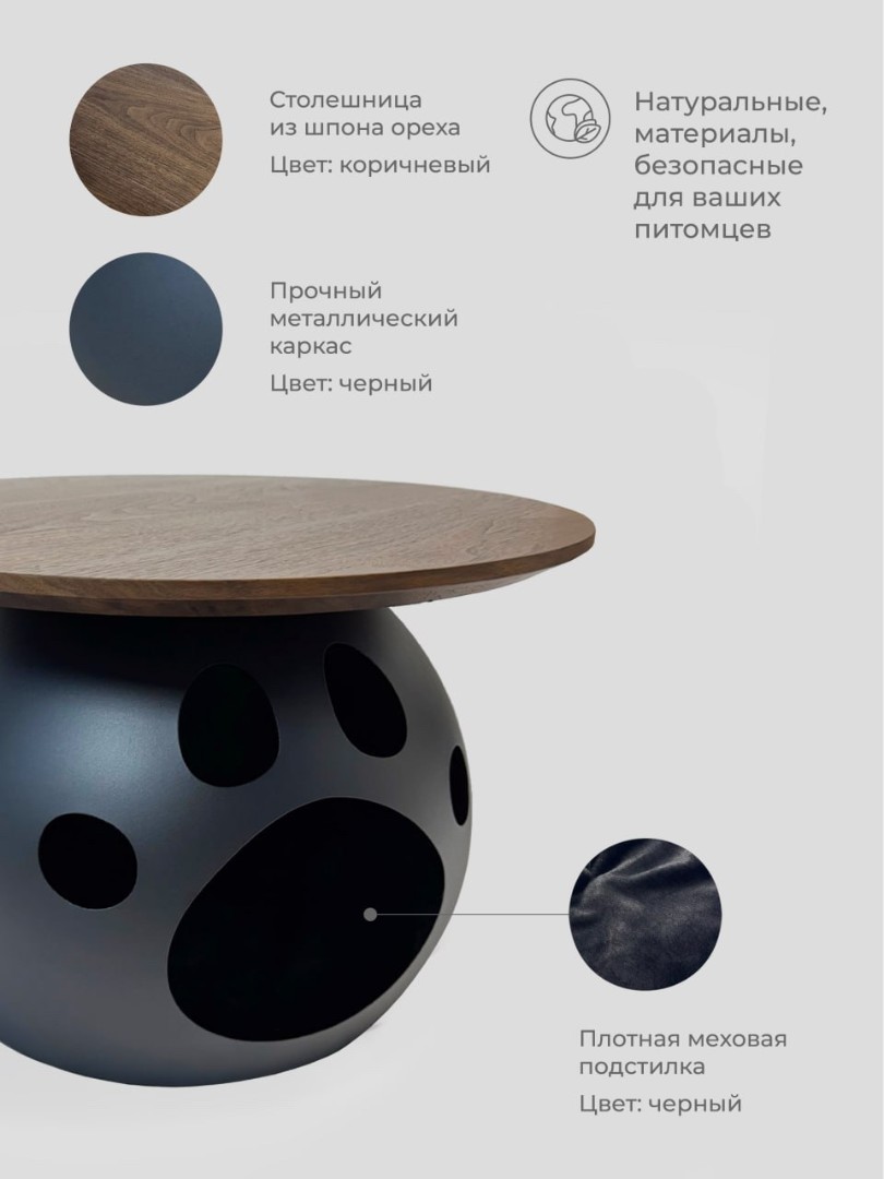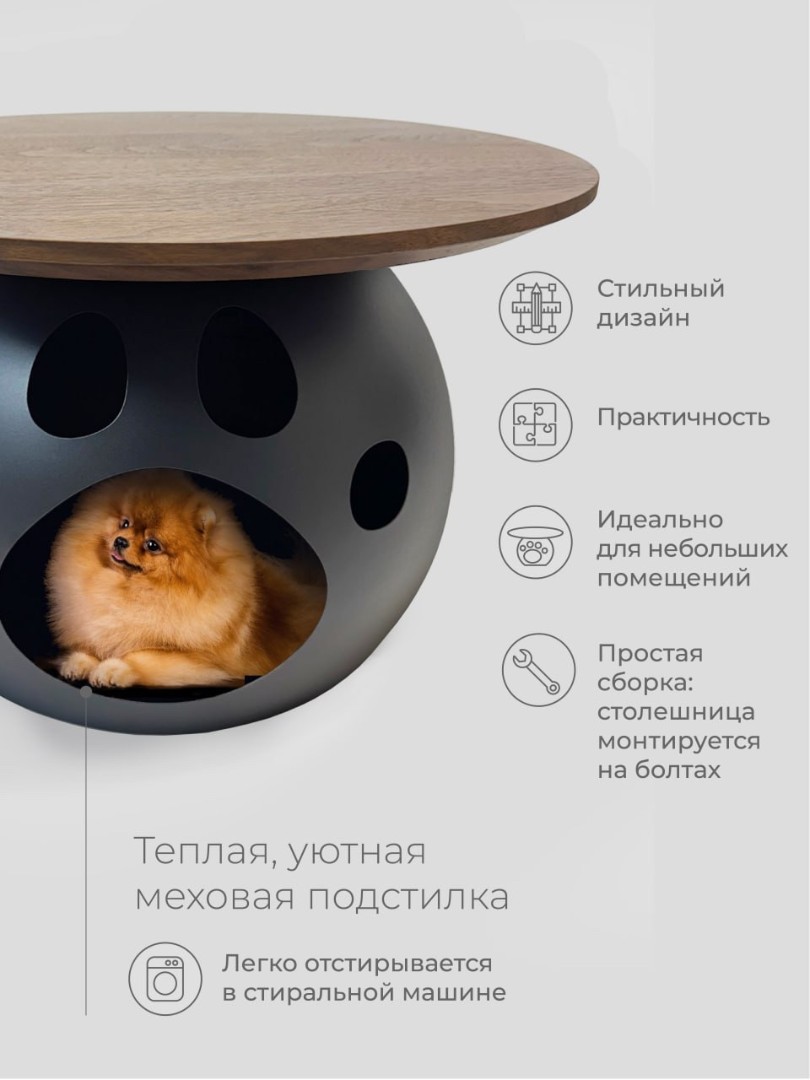 Форма столешницы: Круглая – мягкие линии создают уютную атмосферу и безопасны для животных.