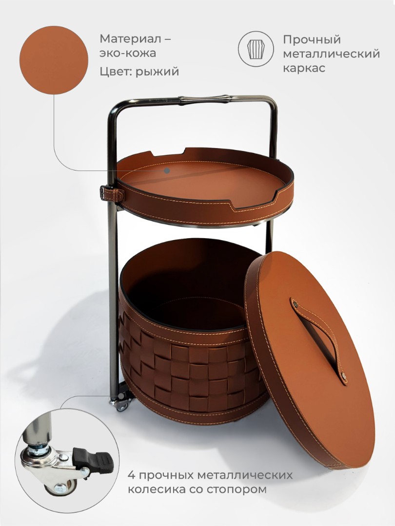 стол на колесах из эко-кожи насыщенного рыжего цвета.